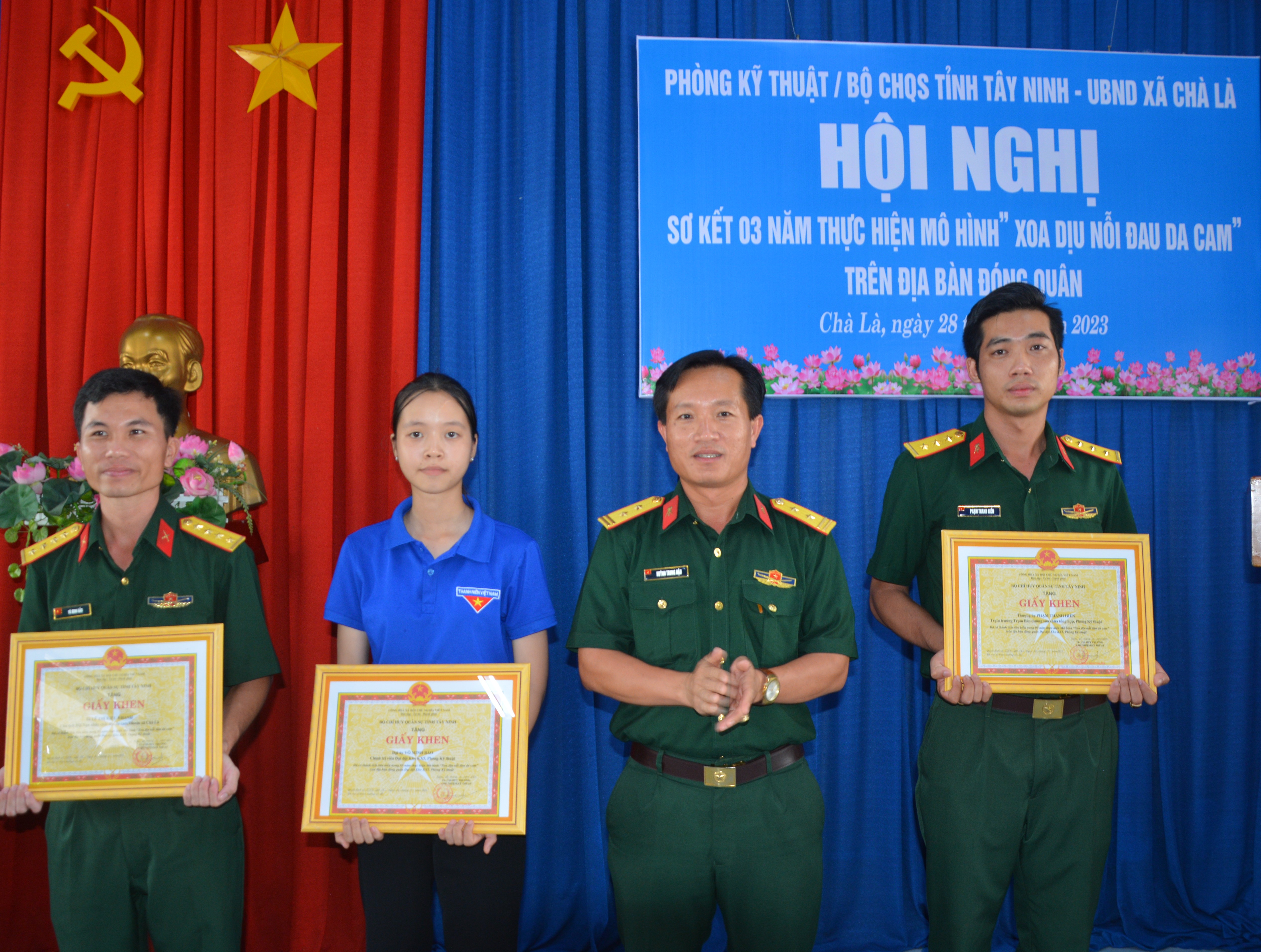 Dịp này, Phòng Kỹ thuật Bộ CHQS tỉnh tặng giấy khen cho bà Lê Thị Kiều Khanh, Chủ tịch Hội nạn nhân chất độc da cam/dioxin xã Chà Là và 2 cá nhân của đơn vị có đóng góp tích cực trong thực hiện mô hình và tặng 3 phần quà cho gia đình nạn nhân chất độc da cam hoàn cảnh khó khăn.
