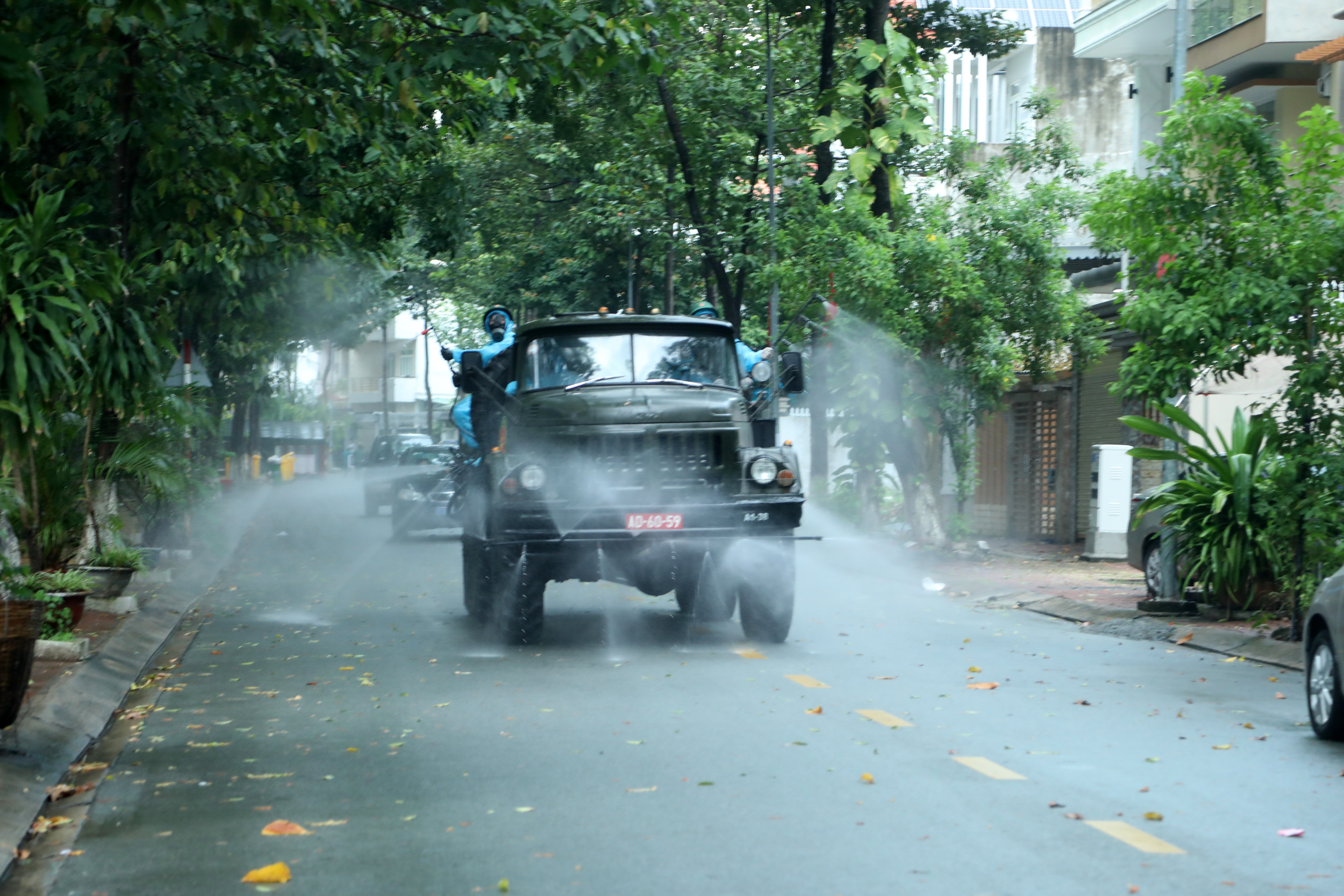 Quân đoàn 4 triển khai 3 xe đặc chủng và hơn 30 cán bộ chiến sĩ của Tiểu đoàn Hóa học 38, Bộ Tham mưu Quân đoàn tiến hành phun hóa chất Cloramin B khử khuẩn toàn bộ khuôn viên trên địa bàn Khu dân cư Hiệp Thành 3, phường Hiệp Thành, thành phố Thành phố Thủ Dầu Một; tuyến đường Phạm Ngọc Thạch qua Khu dân cư Hiệp Thành 3 và toàn bộ các tuyến hẻm trong khu vực dân cư đang bị phong tỏa, cách ly y tế. Đây là khu vực có trụ sở bệnh nhân số 7059 làm việc.