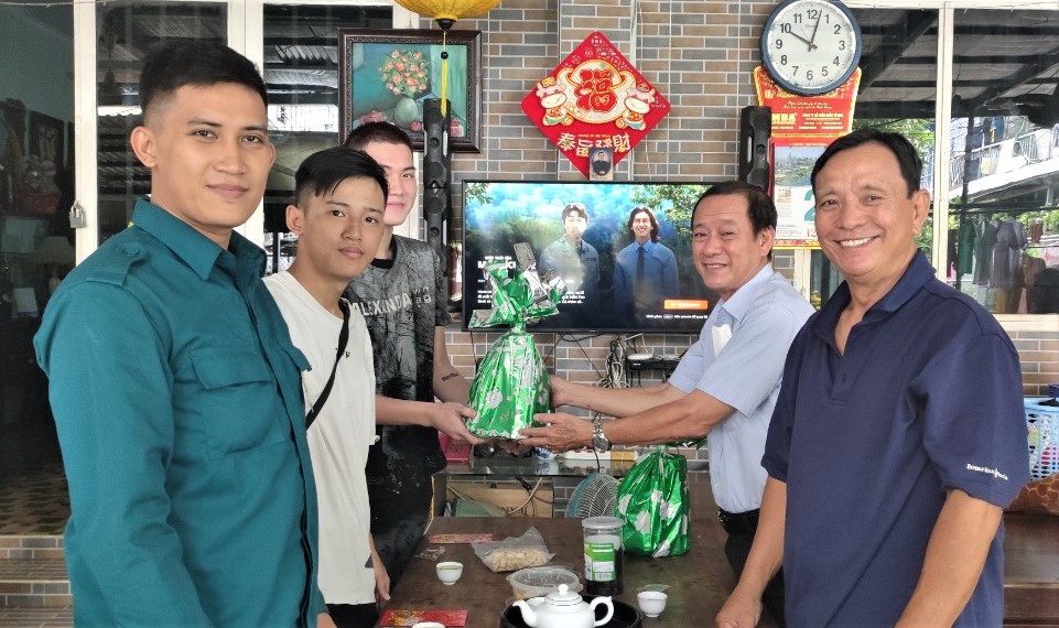Đồng chí Lâm Thủy Kiệt, Chủ tịch Hội Cựu chiến binh phường 2, Bí thư Chi bộ Khu phố 7, phường 2, Quận 8 tặng quà động viên thanh niên chuẩn bị nhập ngũ.