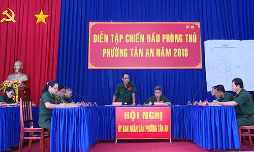 Đồng chí Lê Thanh Sang, Chỉ huy trưởng Ban CHQS phường Tân An cho biết, một nhiệm vụ thể hiện sự quan tâm đến công tác QS-QP là chăm lo xây dựng lực lượng dân quân “vững mạnh - rộng khắp”; trong đó tập trung nâng cao chất lượng chính trị, độ tin cậy và khả năng hoạt động, nâng cao hiệu quả làm tham mưu cho cấp ủy, chính quyền trong thực hiện nhiệm vụ QS-QP. Hiện nay, lực lượng dân quân phường xây dựng đạt 1,15% so với dân số, đảng viên chiếm 25%, chi bộ quân sự có chi ủy và cán bộ khu đội trưởng là đảng viên. Bên cạnh đó, công tác huấn luyện quân sự, giáo dục chính trị cho cán bộ, chiến sĩ dân quân từ phường đến khu phố được chỉ đạo quyết liệt và hoàn thành đúng, đủ, nội dung chương trình quy định; nhất là nâng cao nhận thức trách nhiệm, ý thức nề nếp kỷ luật, pháp luật của Nhà nước trong thực hiện chức trách nhiệm vụ được giao. Hưởng ứng phong trào thi đua quyết thắng, đồng thời thực hiện phương châm huấn luyện “Cơ bản, thiết thực, vững chắc”, Ban CHQS phường đã chủ động tham mưu hoàn thiện hệ thống văn bản phương án chiến đấu tại chỗ, phòng chống thiên tai, địch họa; xây dựng kế hoạch huấn luyện cho các đối tượng theo đúng quy định; phân công cán bộ chuẩn bị địa điểm vật chất, mô hình, học cụ, giáo án, bài giảng để huấn luyện. Từ đầu năm 2018 đến nay, Ban CHQS phường đã bảo đảm 100% cán bộ, chiến sĩ được học tập các chuyên đề giáo dục chính trị và chương trình huấn luyện các nội dung.