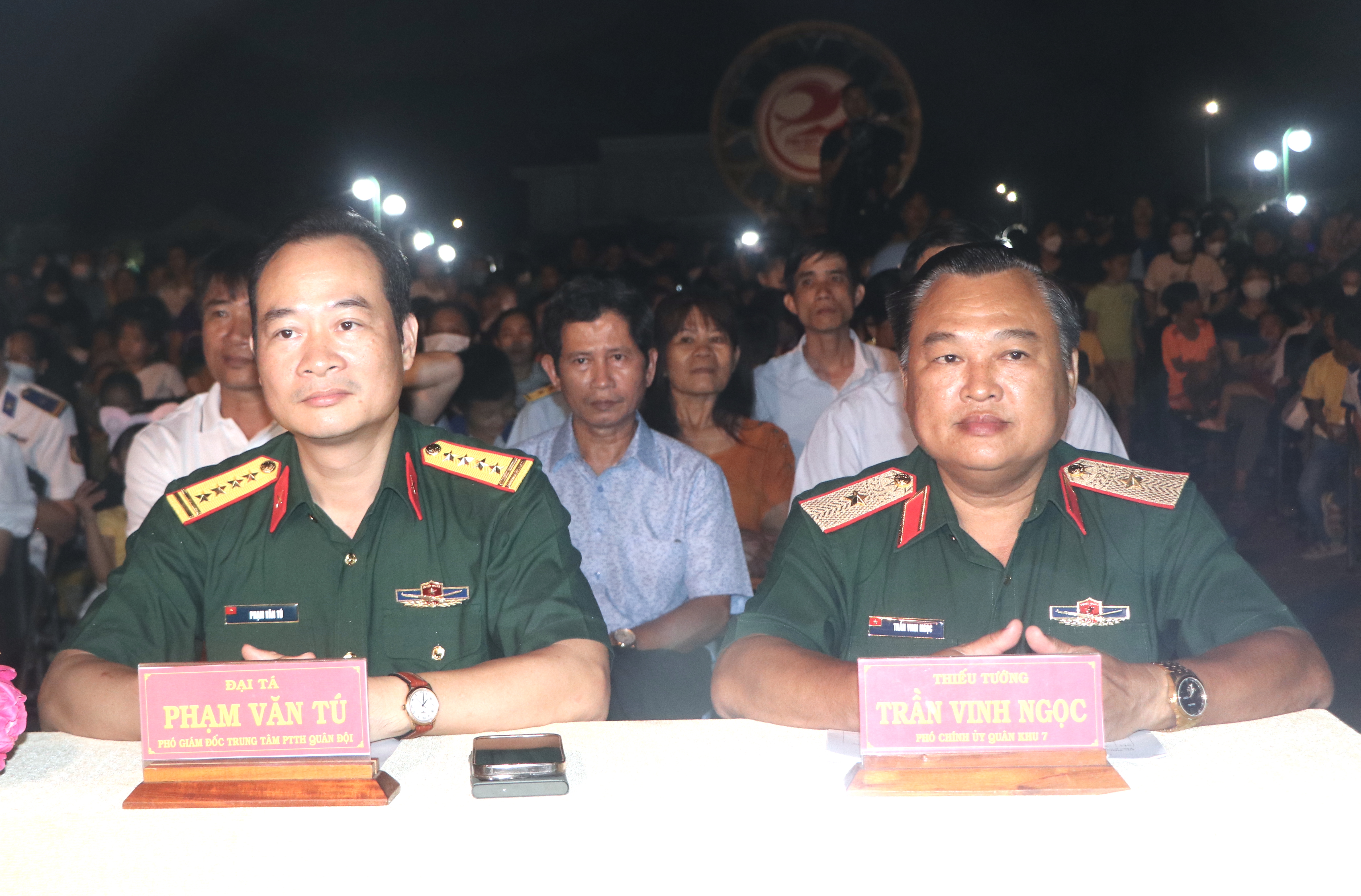 Thiếu tướng Trần Vinh Ngọc, Phó Chính ủy Quân khu 7  (bìa phải) dự chương trình