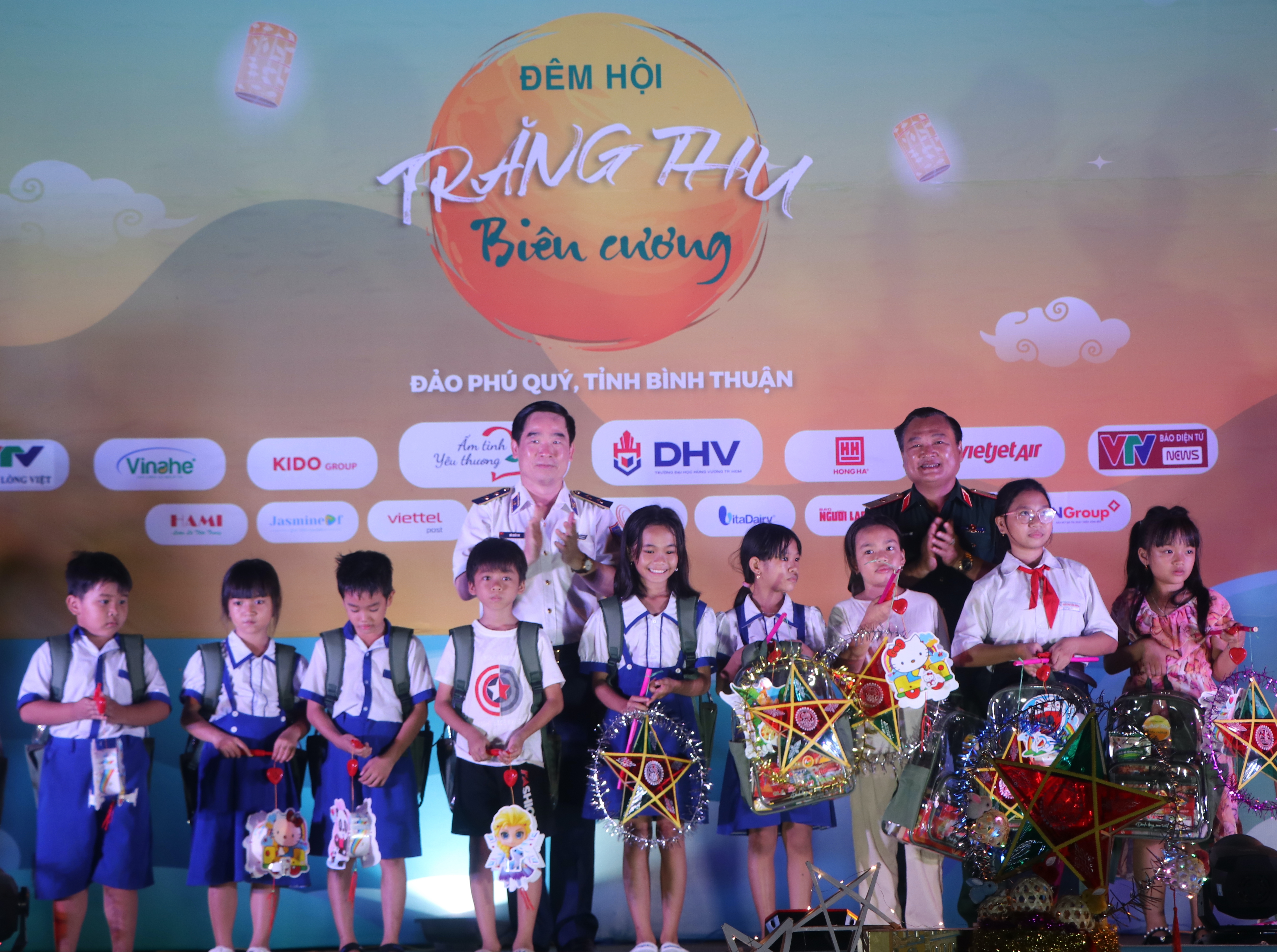 (QK7 Online) - 500 chiếc lồng đèn Trung thu cùng các phần quà đã được cán bộ, chiến sĩ LLVT và các nhà hảo tâm dành tặng các em nhỏ trên đảo Phú Quý, tỉnh Bình Thuận như một món quà yêu thương, chung tay vun đắp cho những ước mơ của các em. Chương trình Đêm hội “Trăng thu biên cương” được Quân khu 7 phối hợp với Trung tâm Phát thanh - Truyền hình Quân đội, Bộ Tư lệnh Cảnh sát biển; Bộ Tư lệnh Bộ đội Biên phòng; UBND huyện Phú Quý tổ chức tối ngày 21/9. Trung tướng Bùi Quốc Oai, Chính ủy Cảnh sát biển Việt Nam; Thiếu tướng Trần Vinh Ngọc, Phó Chính ủy Quân khu 7; Đại tá Trần Đức Thắng, Phó Chủ nhiệm Chính trị Quân khu 7 dự chương trình.