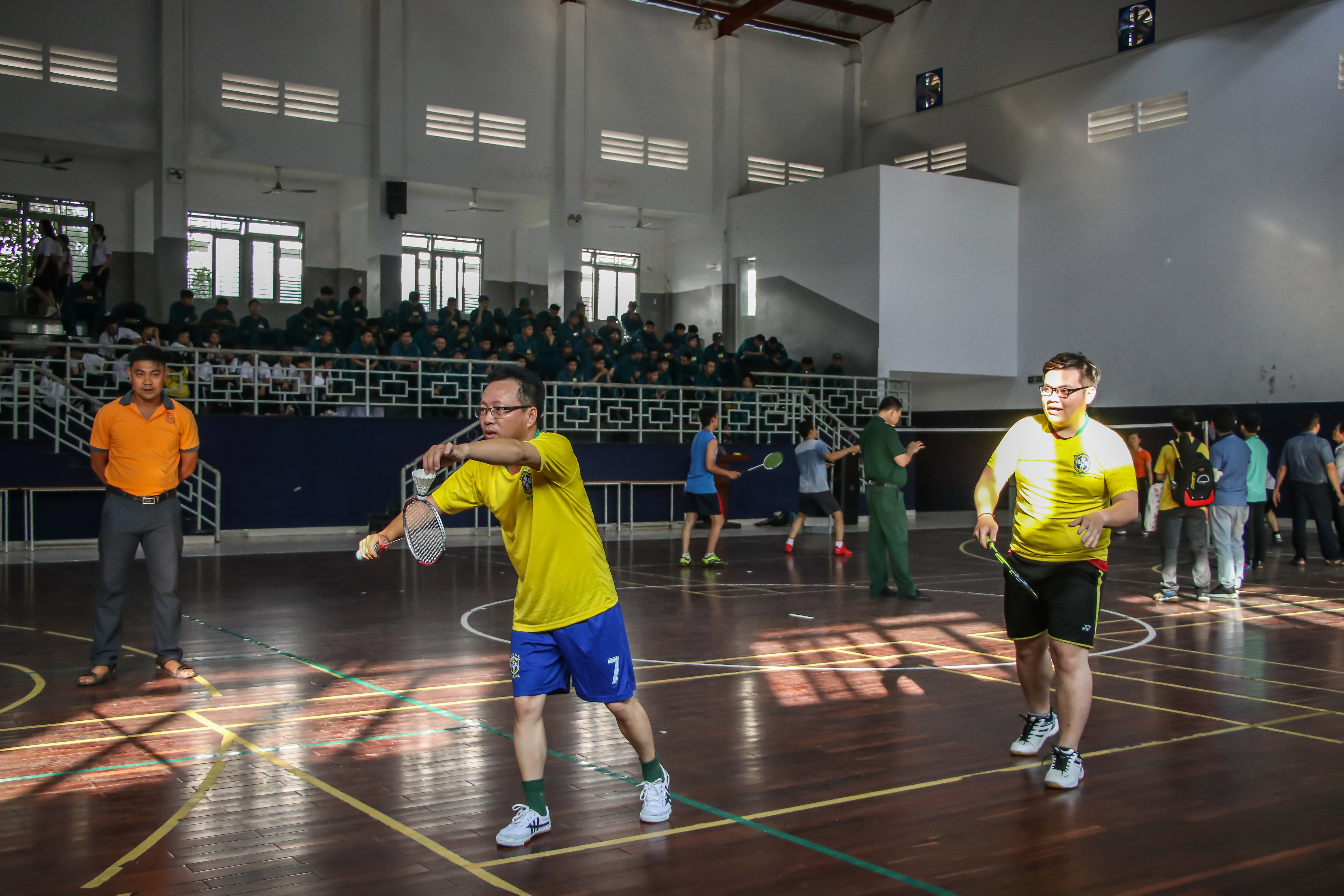 Vận động viên của Ban CHQS quận 8 thi đấu cầu lông.