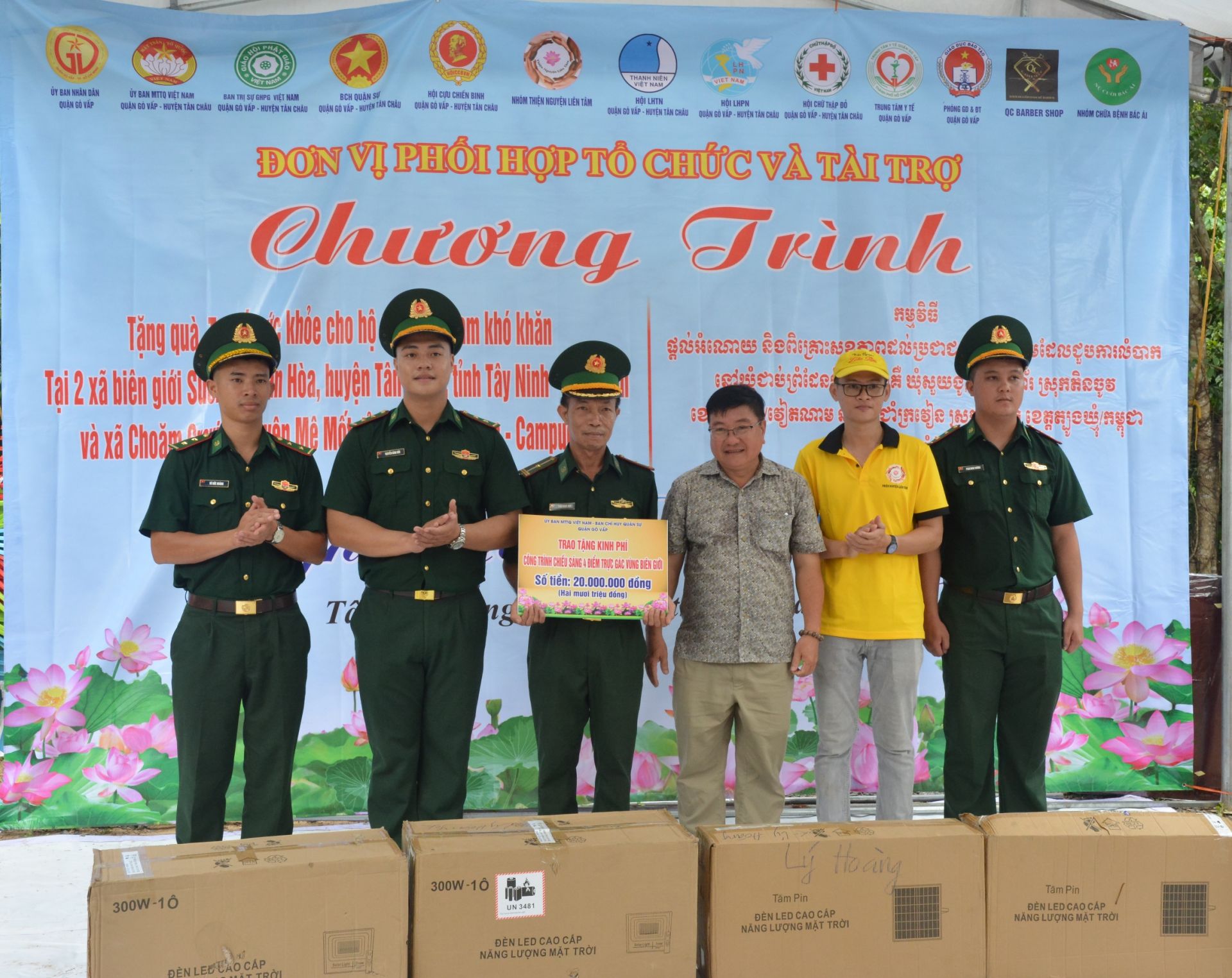 Trao 20 chiếc xe đạp cho 20 em học sinh nghèo hiếu học; hỗ trợ Quỹ vì người nghèo 2 xã Tân Hòa, Suối Ngô; hỗ trợ chi phí xây dựng 2 căn nhà đại đoàn kết cho UBMTTQVN huyện Tân Châu; trao 4 cụm đèn năng lượng mặt trời chiếu sáng cho các chốt biên giới thuộc Đồn Biên phòng Tống Lê Chân.