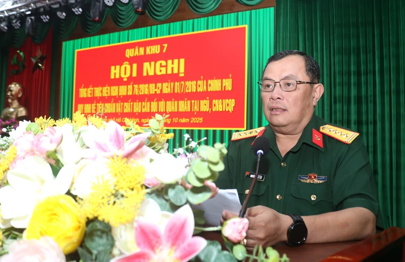 (QK7 Online) – “Qua 10 năm thực hiện Nghị định số 76, công tác bảo đảm vật chất hậu cần trong toàn LLVT Quân khu đã đi vào nền nếp, bảo đảm đúng, đủ, thống nhất, kịp thời; đời sống vật chất tinh thần của bộ đội, CN&VCQP ngày càng được nâng cao” – Là nhận định chung của các đại biểu dự hội nghị tổng kết Nghị định 76 của Chính phủ quy định về tiêu chuẩn vật chất hậu cần đối với quân nhân tại ngũ, công nhân và viên chức quốc phòng (CN&VCQP) trong LLVT Quân khu diễn ra vào chiều 31/10/2025.