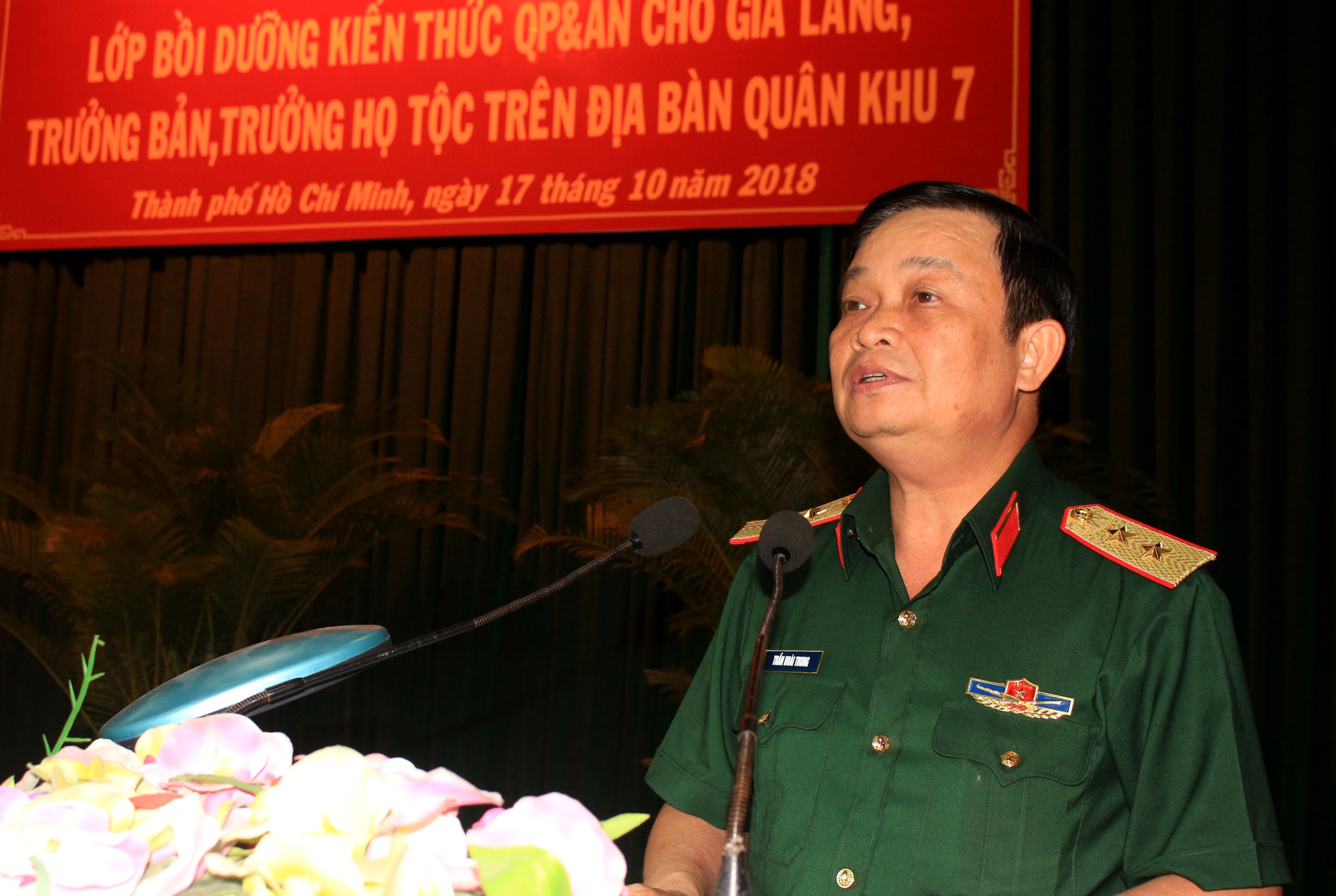 Phó Đô đốc Trần Hoài Trung - Bí thư Đảng ủy - Chính ủy Quân khu 7 phát biểu tại lễ bế giảng