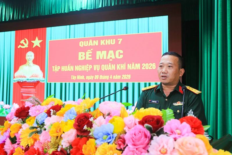 (QK7 Online) - Chiều 9/4, tại Sư đoàn 5, Quân khu 7 tổ chức bế mạc tập huấn nghiệp vụ quân khí năm 2026. Đại tá Vũ Nam Sơn, Ủy viên Đảng ủy Quân khu, Phó Chủ nhiệm Hậu cần - Kỹ thuật Quân khu dự và phát biểu bế mạc.
