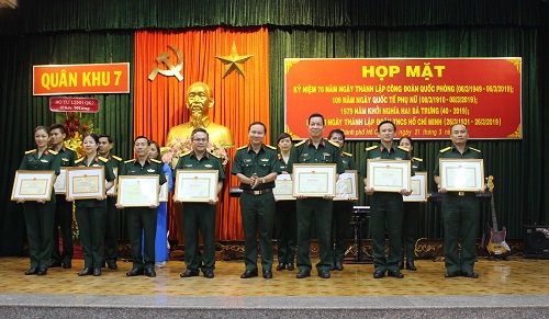 Trong dịp này, 76 tập thể và 158 cá nhân đã được trao Bằng khen, Cờ thi đua, Giấy khen của TW Đoàn, TW Hội, Tổng Liên đoàn lao động Việt Nam, Tổng cục Chính trị, Bộ Tư lệnh Quân khu 7 và Cục chính trị Quân khu vì những đóp góp xuất sắc cho công tác quần chúng năm 2018.