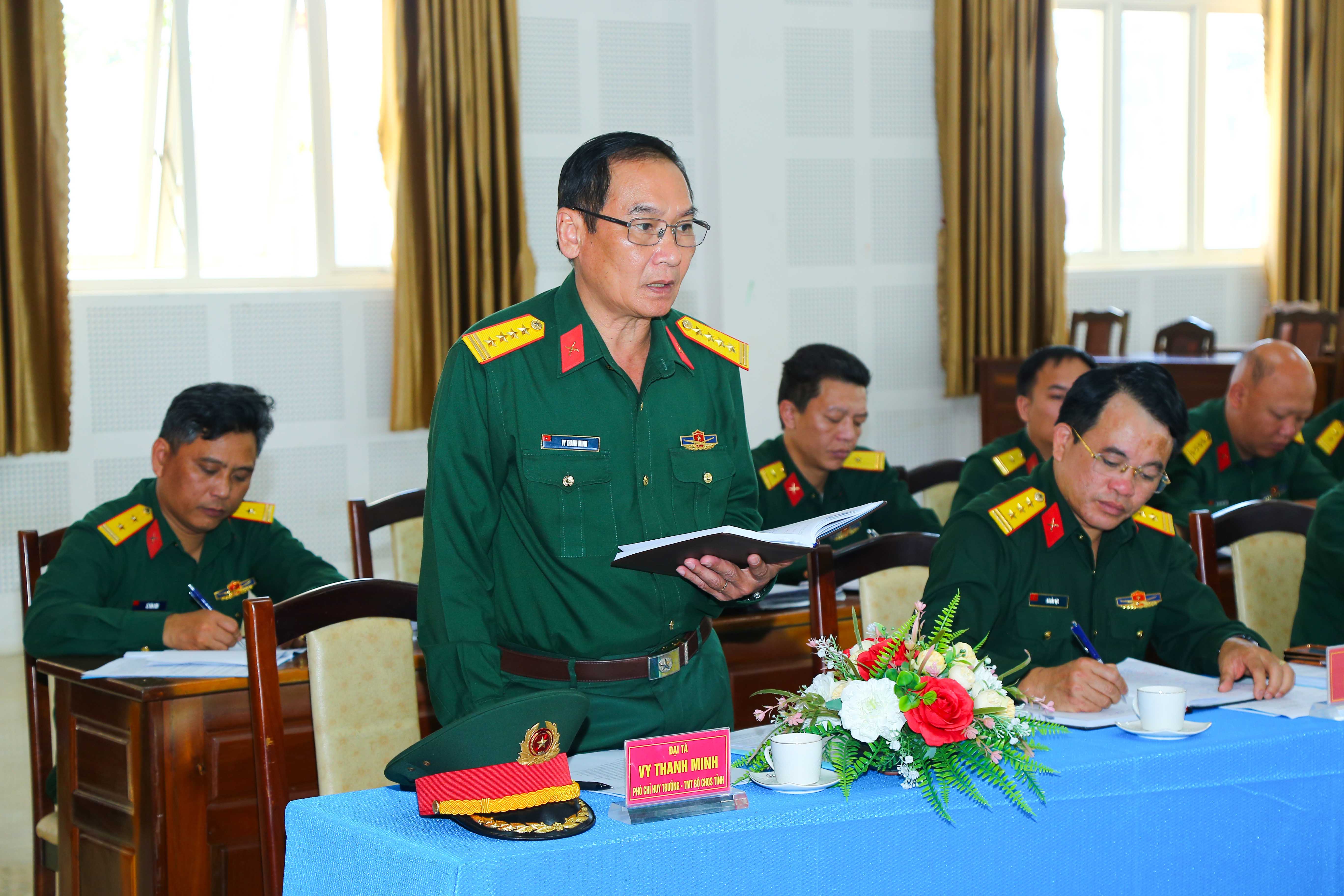 Đại tá Vy Thanh Minh, Phó Chỉ huy trưởng, Tham mưu trưởng Bộ CHQS tỉnh Lâm Đồng báo cáo kết quả chuẩn bị điều chỉnh biên chế mới các cơ quan, đơn vị.
