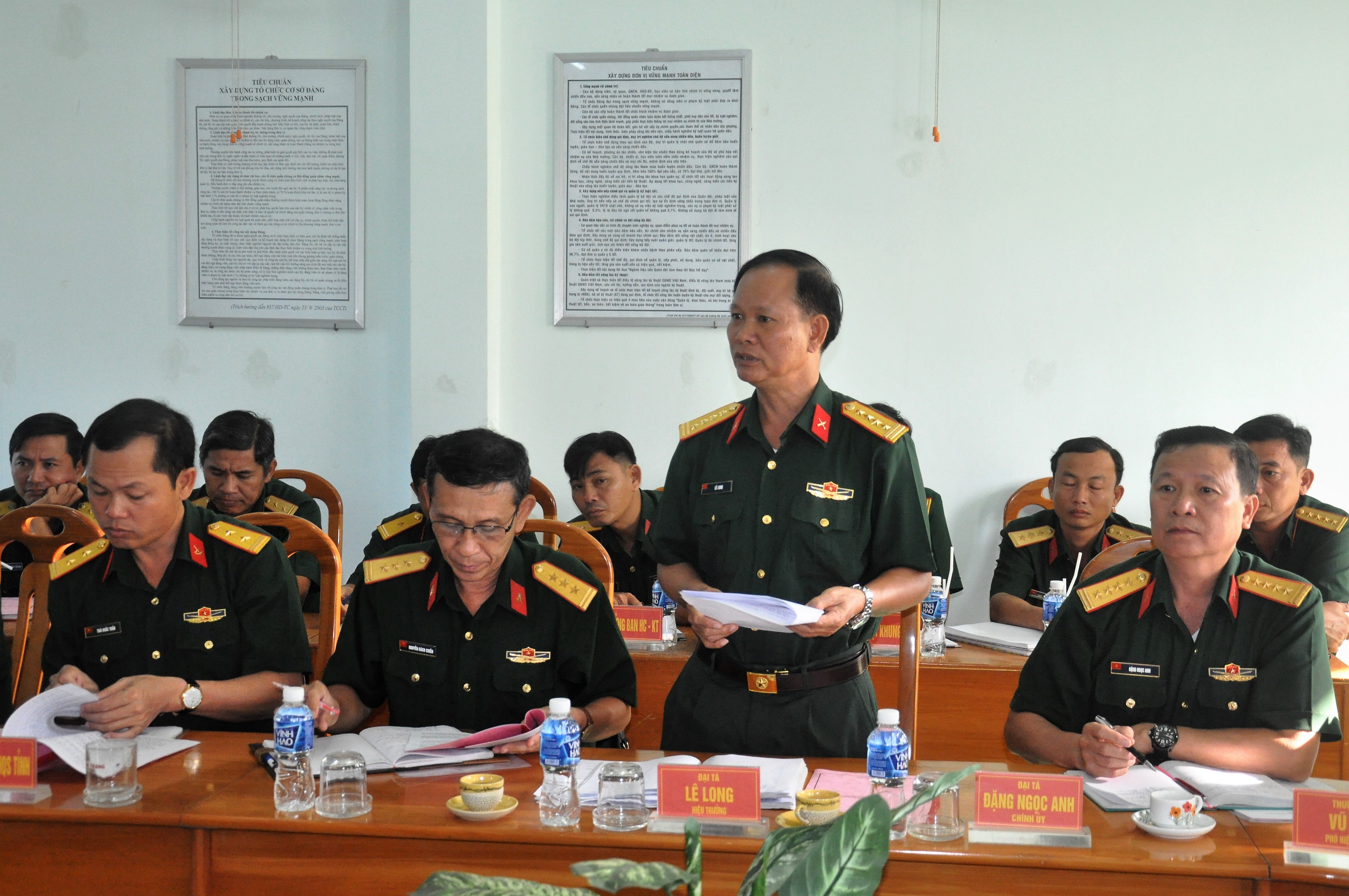 Đại tá Lê Long, Hiệu trưởng Trường Quân sự tỉnh báo cáo đoàn kiểm tra