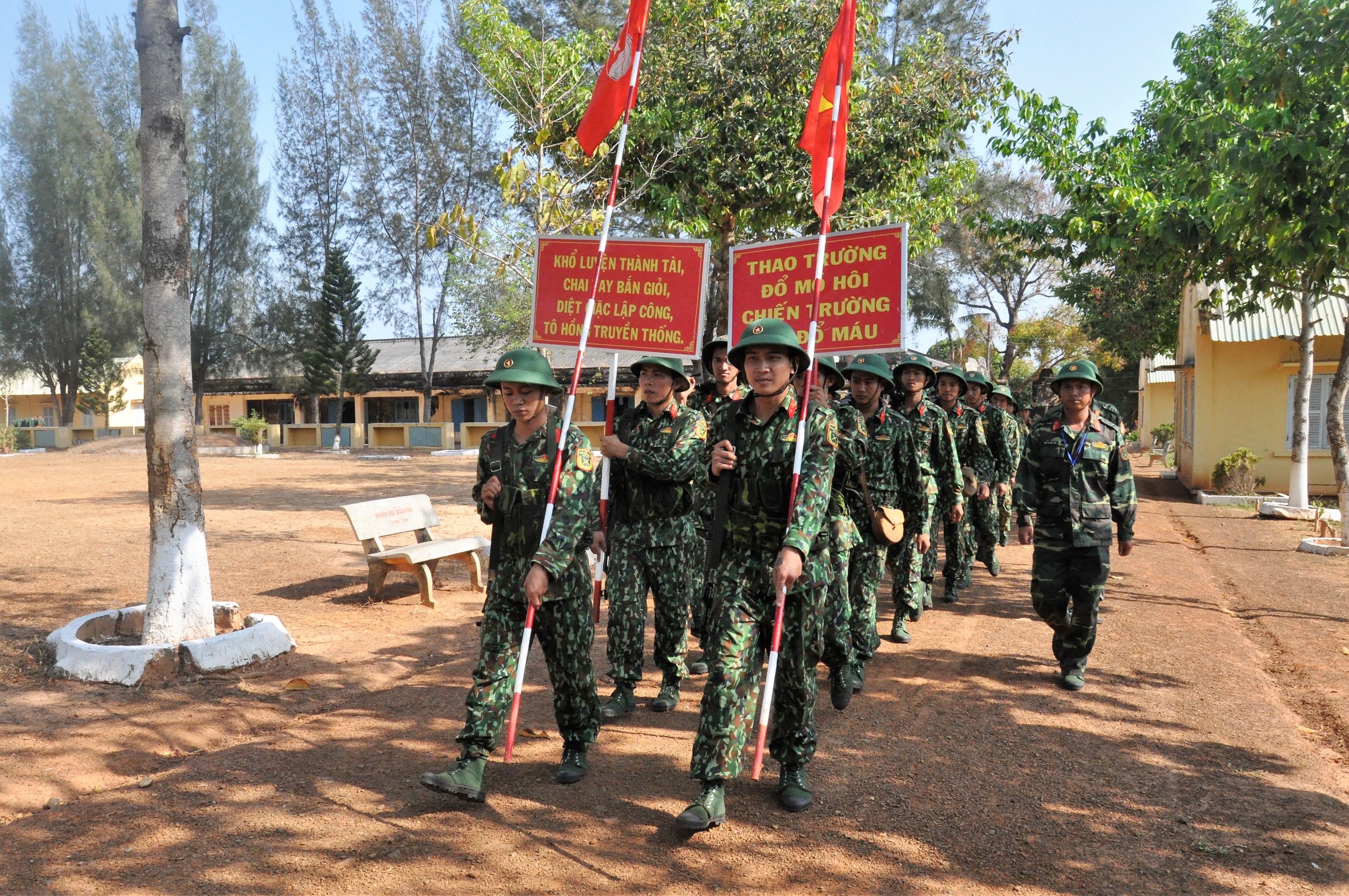 Báo cáo với đoàn kiểm tra Bộ Tư lệnh Quân khu 7, Đại tá Lê Long, Hiệu trưởng Trường Quân sự tỉnh cho biết: Đơn vị được Bộ Chỉ huy Quân sự tỉnh giao nhiệm vụ huấn luyện 120 chiến sỹ mới thuộc 7 huyện, thị xã, thành phố trong tỉnh.