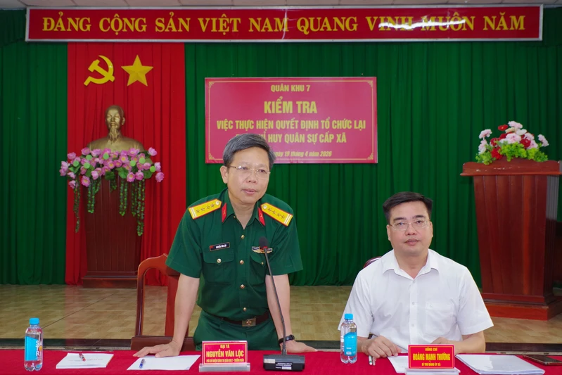 (QK7 Online) - Ngày 19/4, Đoàn công tác Quân khu 7 do Đại tá Nguyễn Văn Lộc, Phó Chủ nhiệm Chính trị Quân khu làm trưởng đoàn đã kiểm tra việc thực hiện quyết định tổ chức lại Ban Chỉ huy Quân sự (CHQS) cấp xã đối với phường An Lộc và xã Lộc Tấn (tỉnh Đồng Nai). Tham gia đoàn có Thủ trưởng Cục Hậu cần - Kỹ thuật Quân khu; đại biểu các phòng, ban chức năng Quân khu và Thủ trưởng Bộ CHQS tỉnh Đồng Nai.