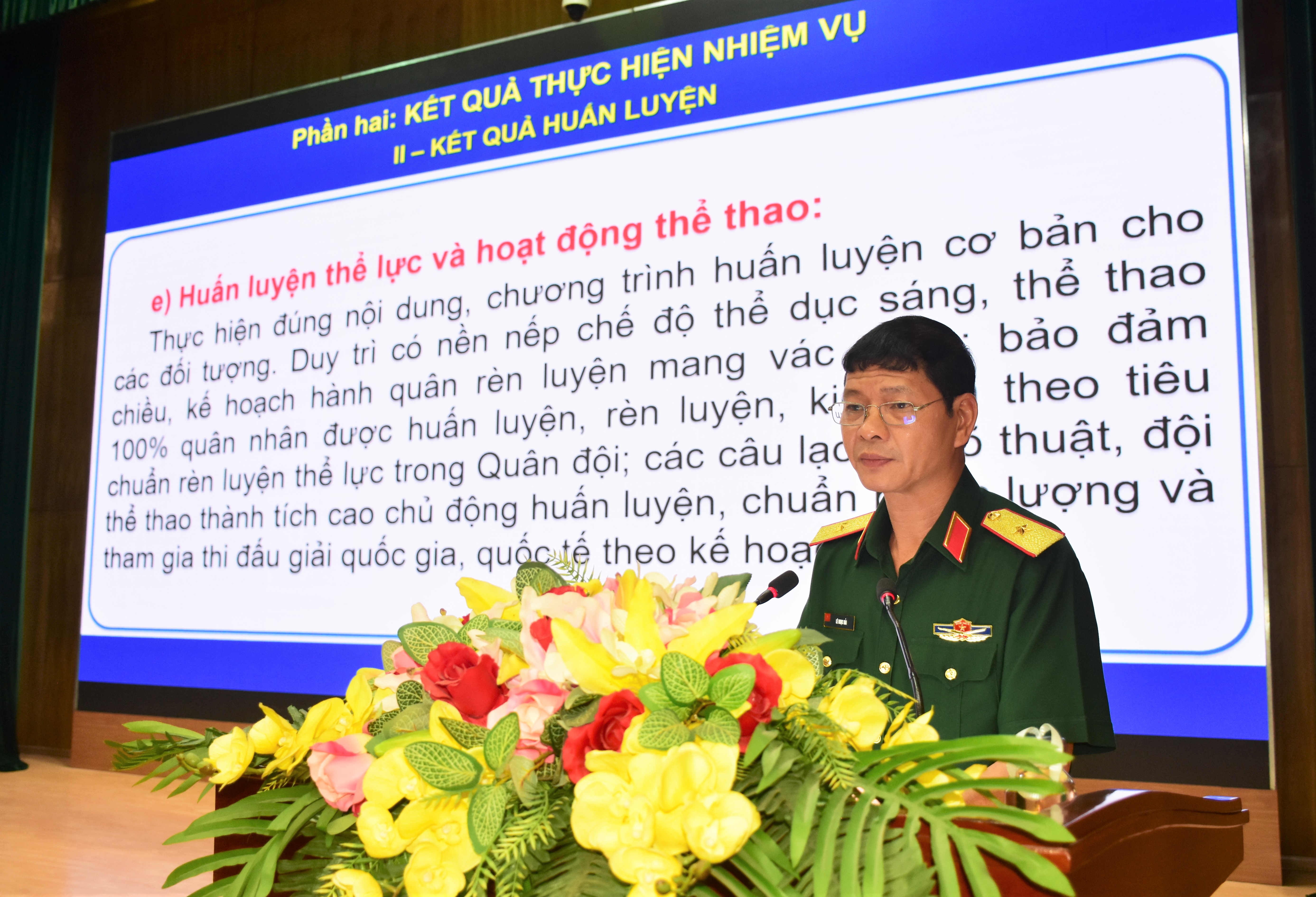 Thiếu tướng Lê Ngọc Hải, Phó Tham mưu trưởng Quân khu báo cáo kết quả công tác huấn luyện quý 1 năm 2023.
