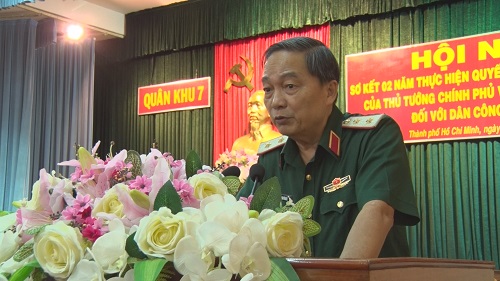 Thay mặt Cơ quan thường trực 24 Bộ Quốc phòng, Đại tá Ngô Quang Phúc - Phó Cục trưởng Cục chính sách ghi nhận kết quả mà Quân khu 7 đạt được trong 2 năm vừa qua, đồng thời thống nhất phương hướng, giải pháp cho giai đoạn sắp tới​. Đồng chí đề nghị những địa phương còn nhiều hồ sơ chưa giải quyết là Long An, Bình Dương và Tây Ninh khắc phục khó khăn, đẩy nhanh tốc độ xét duyệt, bảo đảm chi trả kịp thời, đúng đối tượng.