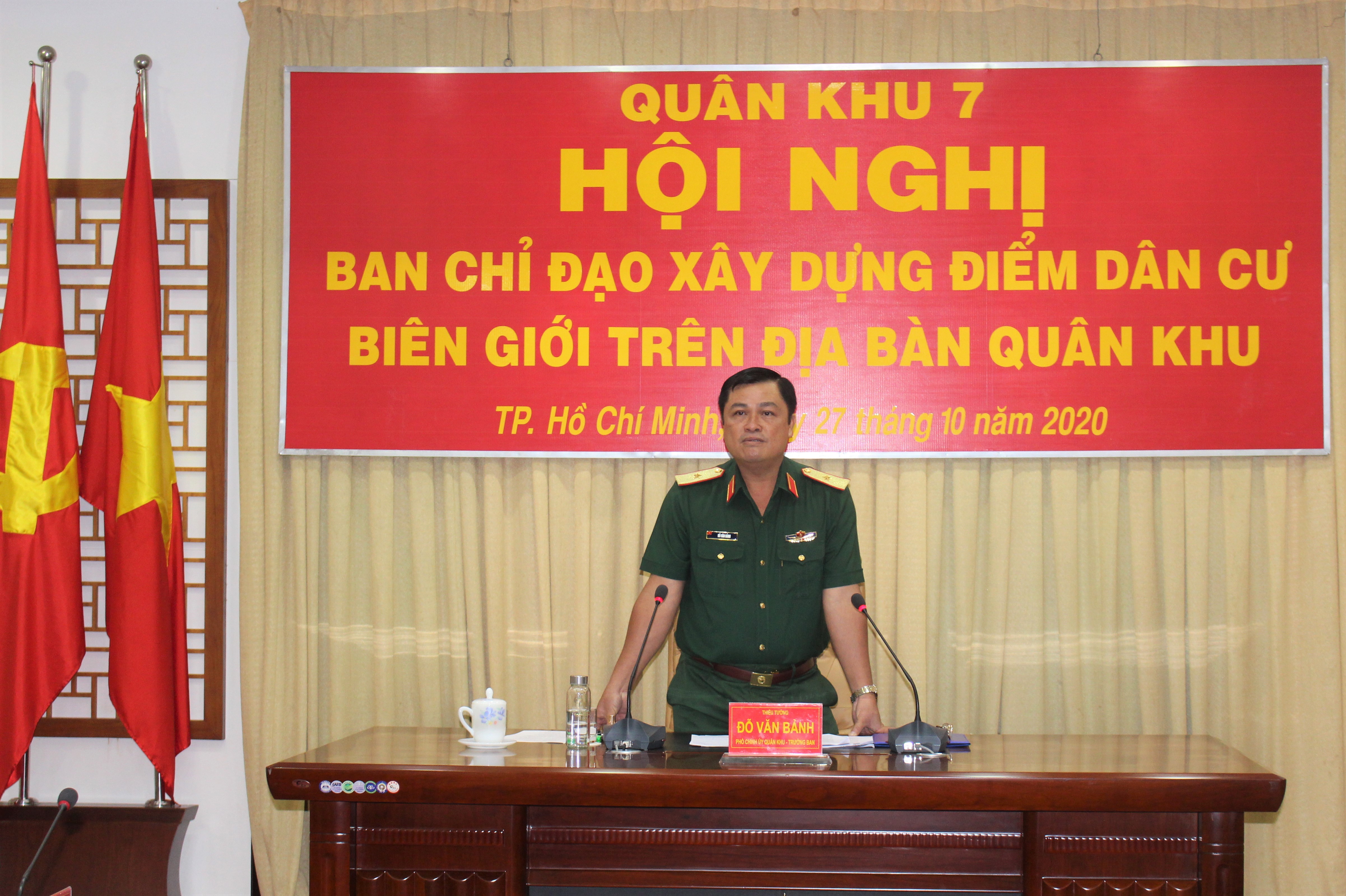(QK7 Online) - Ngày 27/10/2020, Ban Chỉ đạo Đề án “Xây dựng Điểm dân cư liền kề chốt Dân quân biên giới trên địa bàn Quân khu giai đoạn 2019 - 2025” tổ chức hội nghị đánh giá kết quả thực hiện Đề án và xác định phương hướng thực hiện trong thời gian tới. Thiếu tướng Đỗ Văn Bảnh, Phó Chính ủy Quân khu 7, Trưởng ban Chỉ đạo chủ trì hội nghị.