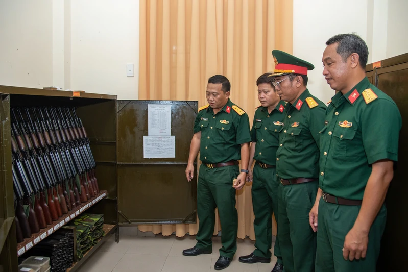 Đoàn công tác kiểm tra vũ khí, trang bị của Ban chỉ huy quân sự xã Phước Chỉ.