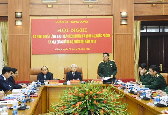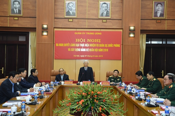 Phát biểu khai mạc, Tổng Bí thư, Chủ tịch nước Nguyễn Phú Trọng, Bí thư QUTƯ yêu cầu các đại biểu đề cao trách nhiệm, đánh giá sát đúng, khách quan kết quả lãnh đạo, chỉ đạo công tác QS, QP của QUTƯ trong năm 2018; nhấn mạnh những kết quả nổi bật đạt được, những hạn chế tồn tại; đồng thời chỉ rõ khuyết điểm cần khắc phục, khó khăn cần tháo gỡ. Trên cơ sở đó đề xuất, thống nhất các nhóm giải pháp lãnh đạo công tác QS, QP và công tác xây dựng Đảng bộ Quân đội trong năm 2019. Tổng Bí thư, Chủ tịch nước Nguyễn Phú Trọng yêu cầu các đồng chí Ủy viên Thường vụ QUTƯ thẳng thắn đề xuất với Trung ương và các cơ quan Trung ương những nội dung, kiến nghị nâng cao hiệu quả công tác QS, QP và sự nghiệp bảo vệ Tổ quốc trong tình hình mới.