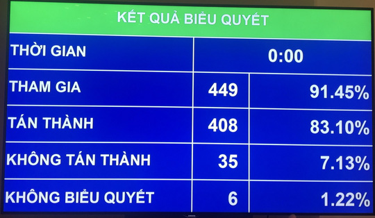 Sáng 22-11, với 83,1% tổng số đại biểu Quốc hội tán thành, Quốc hội (QH) đã thông qua Nghị quyết về chủ trương đầu tư Dự án xây dựng một số đoạn đường bộ cao tốc trên tuyến Bắc - Nam phía Đông giai đoạn 2017 – 2020.