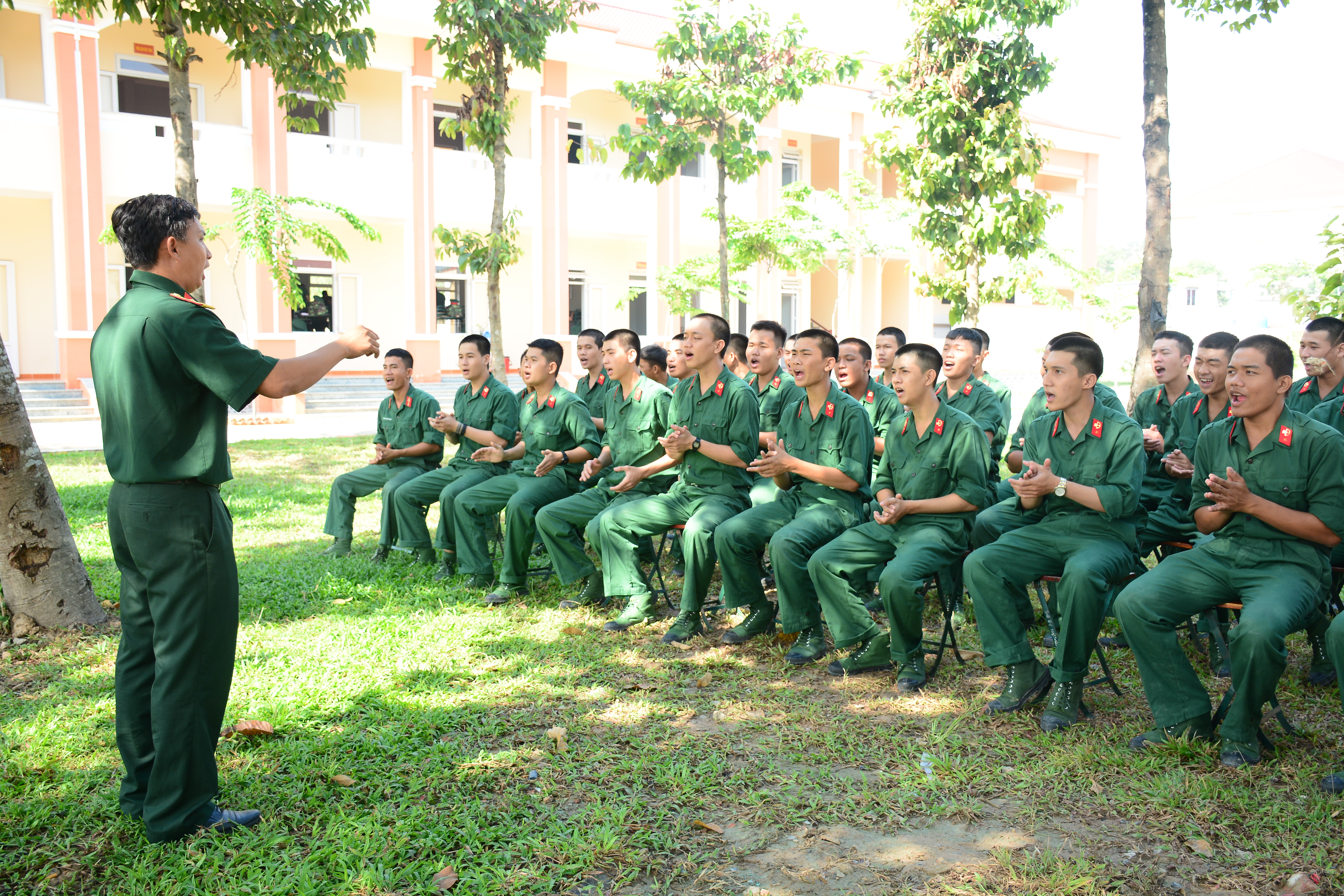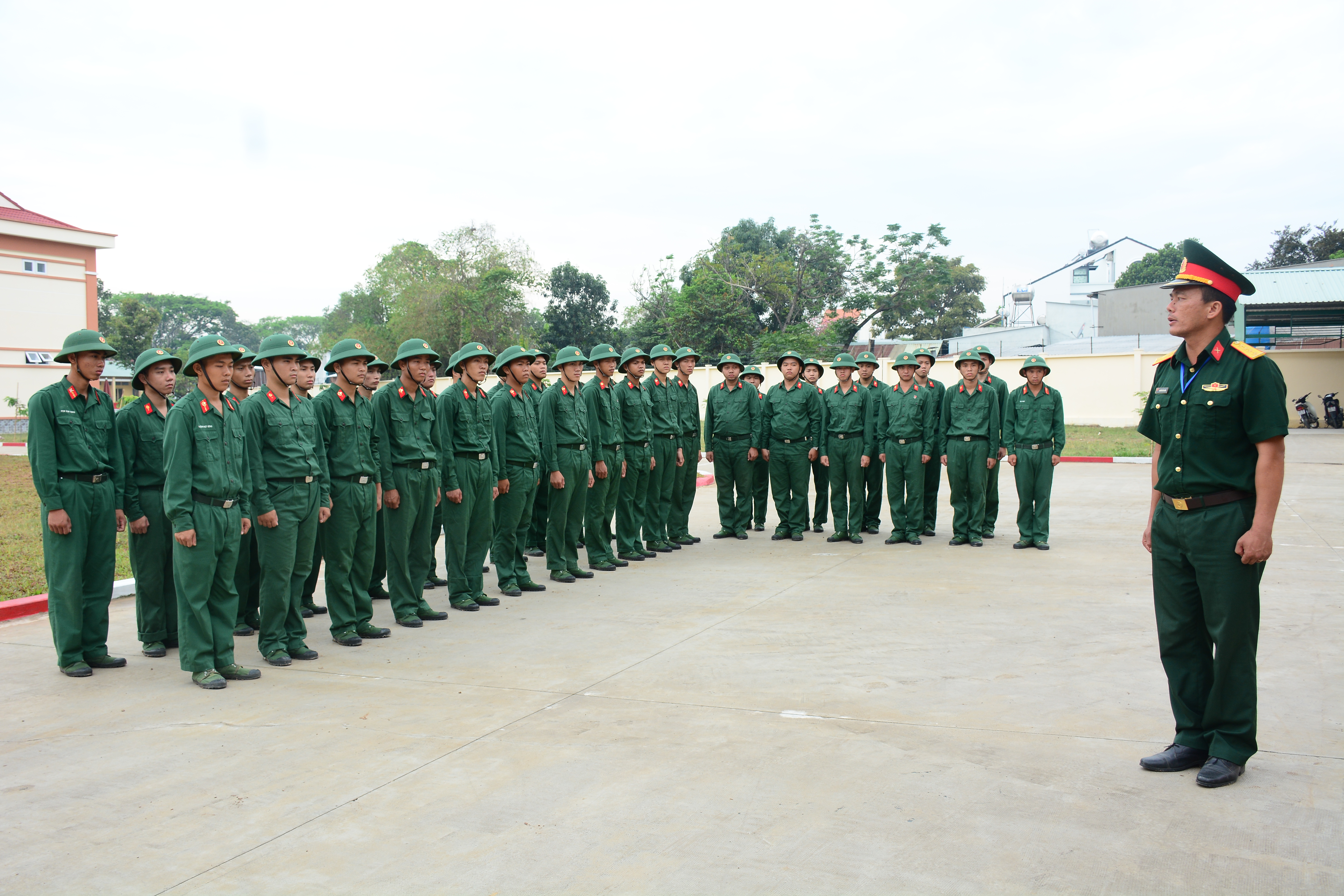 Giới thiệu động tác điều lệnh đội ngũ cho chiến sĩ mới.