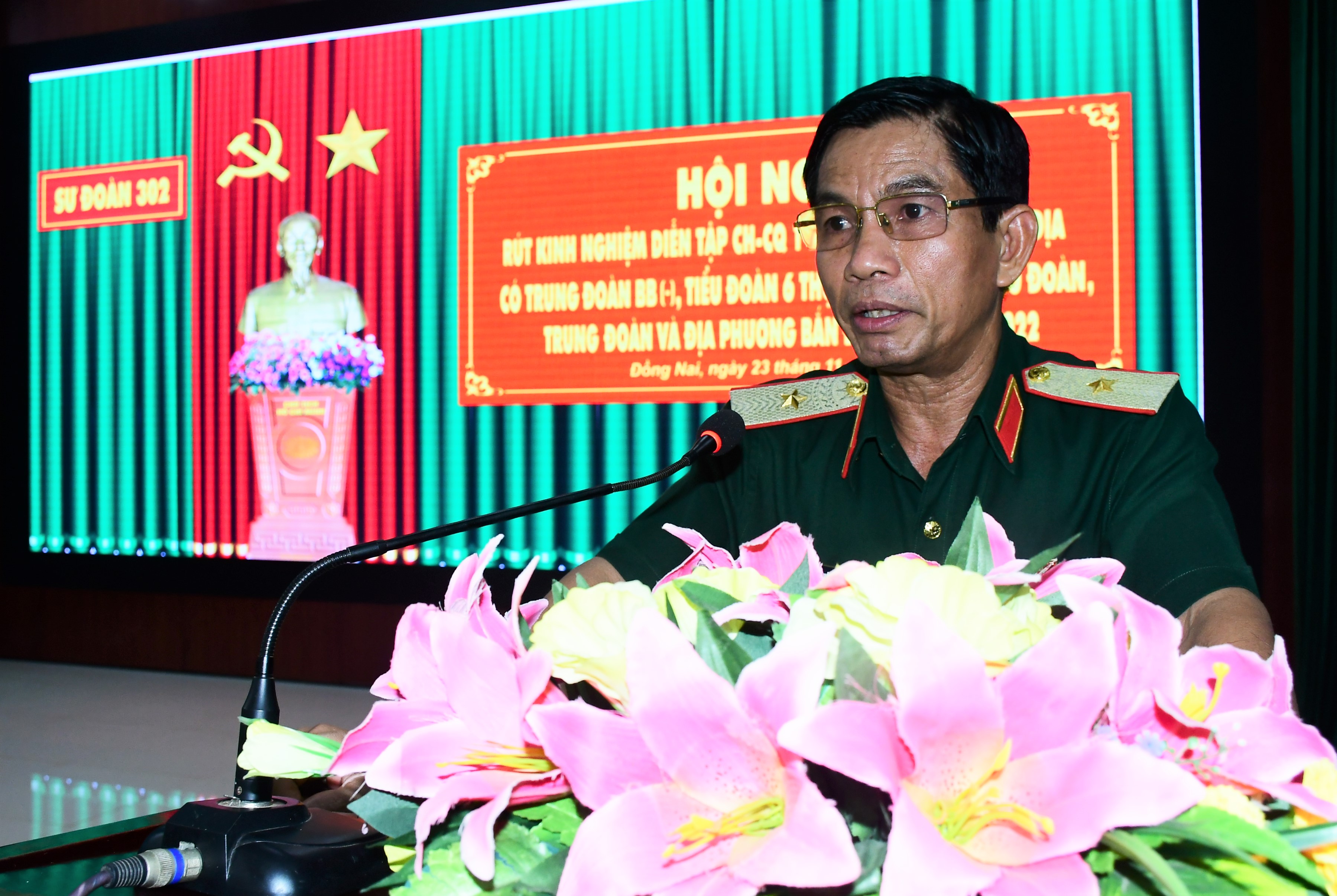 Phát biểu chỉ đạo, Thiếu tướng Đặng Văn Hùng, Phó Tư lệnh, Tham mưu trưởng Quân khu biểu dương sự nỗ lực, cố gắng của cán bộ, chiến sĩ Sư đoàn 302 đã khắc phục khó khăn, hoàn thành xuất sắc nhiệm vụ diễn tập chỉ huy, cơ quan 1 bên, 2 cấp có bắn đạn thật năm 2022. Cuộc diễn tập được lãnh đạo, chỉ đạo chặt chẽ, công tác chuẩn bị kỹ lưỡng, có sự đổi mới toàn diện về quy mô, nội dung và phương pháp, công tác chỉ huy, hiệp đồng diễn tập chặt chẽ, thống nhất.