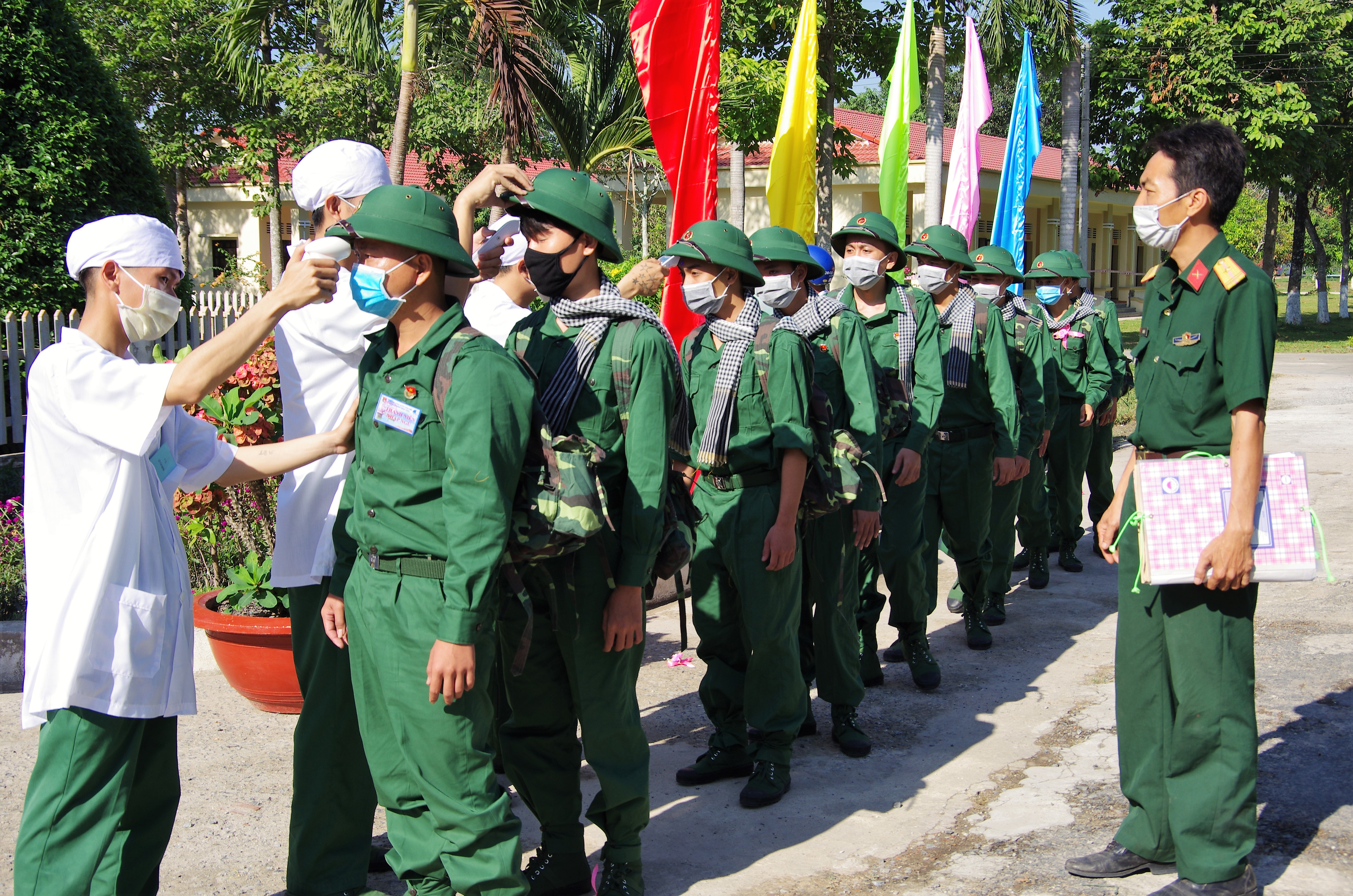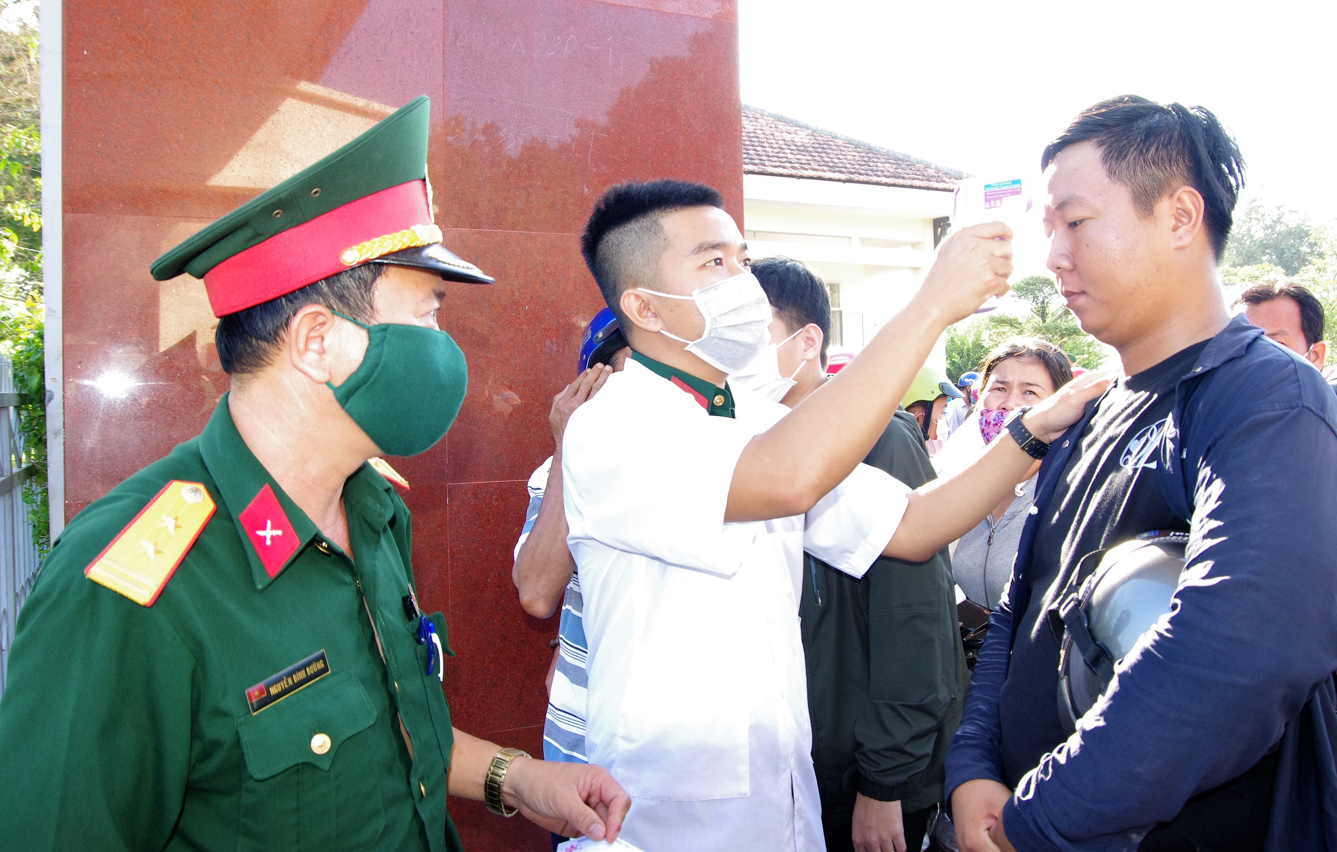 Kiểm tra thân nhiệt người thân và chiến sĩ.
