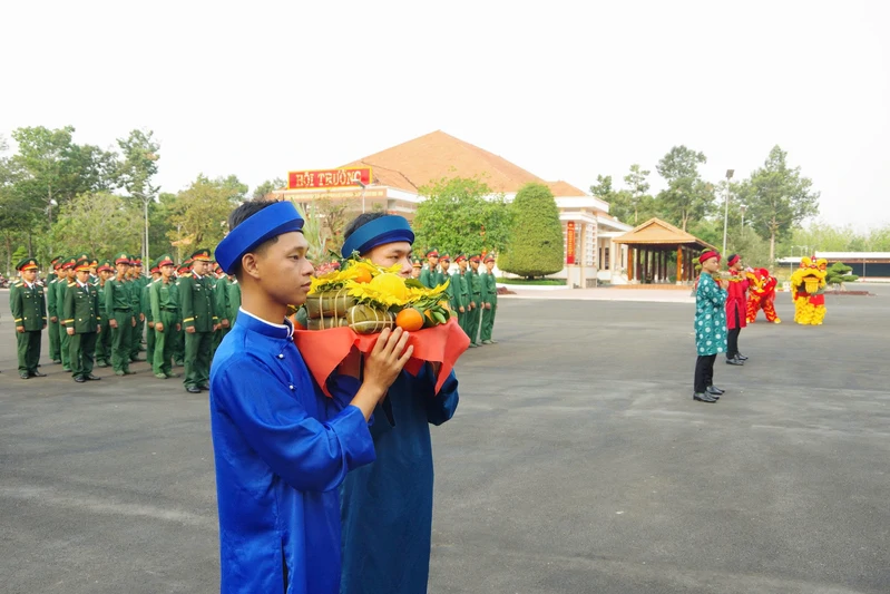 (QK7 Onlone) - Sáng 14/2/2026, trong không khí trang nghiêm, thành kính những ngày cận Tết nguyên đán Bính Ngọ năm 2026, cán bộ, chiến sĩ Sư đoàn 5 tổ chức Lễ dâng bánh, dâng hương tại Nhà tưởng niệm Chủ tịch Hồ Chí Minh và Nhà bia tưởng niệm các Anh hùng Liệt sĩ.Thượng tá Phan Hoài Quyết, Phó Chính ủy Sư đoàn chủ trì buổi Lễ.