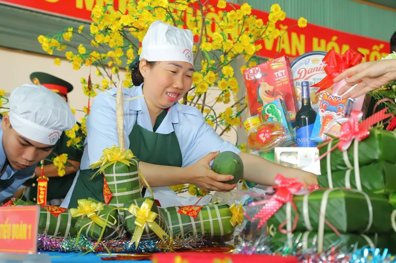 (QK7 Online) - Những ngày giáp Tết, doanh trại Trung đoàn 4, Sư đoàn 5 rộn ràng sắc xuân. Cờ hoa, panô, khẩu hiệu được trang trí trang trọng, nổi bật với những thông điệp mừng Đảng, mừng Xuân, tạo nên không khí Tết cổ truyền ấm áp, tươi vui.