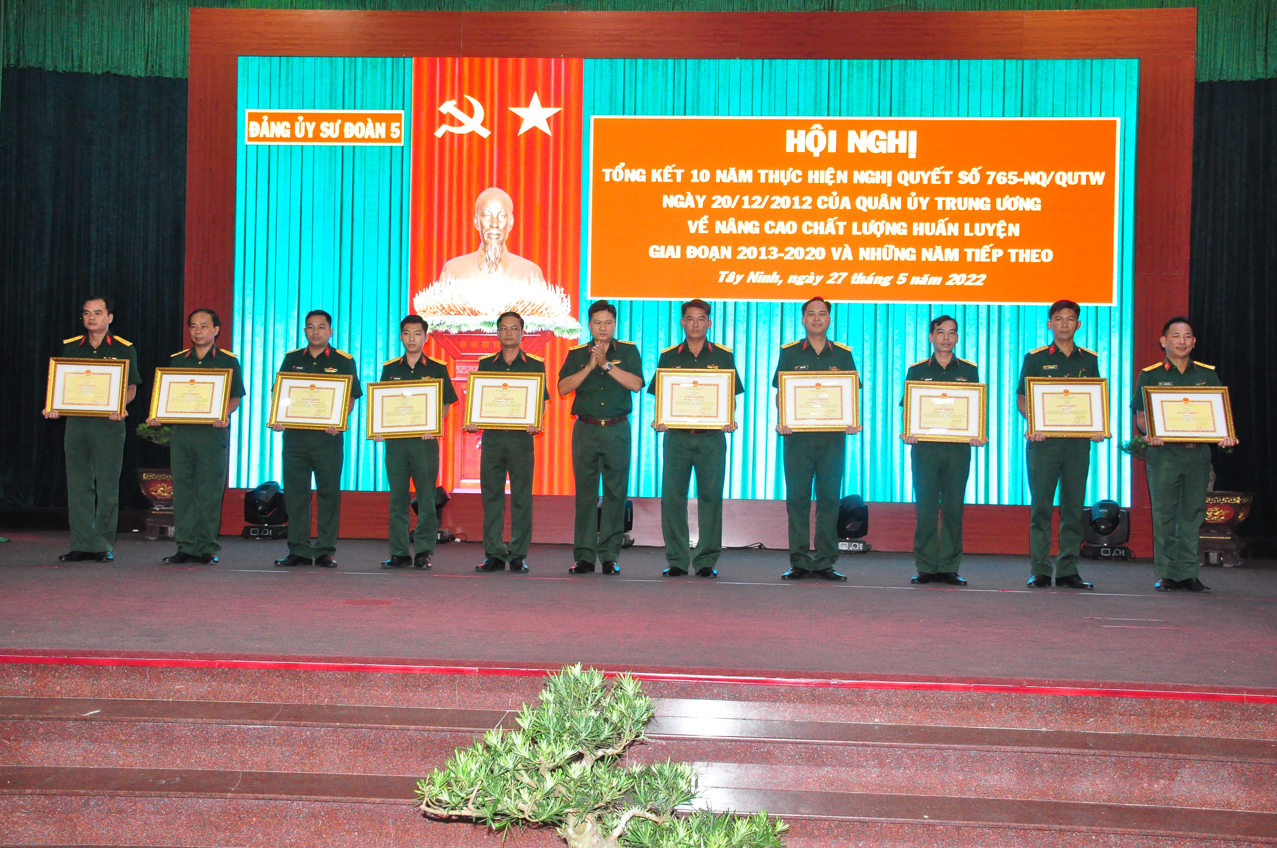 Tại hội nghị, Sư đoàn đã tổ chức trao thưởng cho 10 tập thể, 9 cá nhân vì có thành tích xuất sắc trong 10 năm thực hiện Nghị quyết 765 của Quân ủy Trung ương.