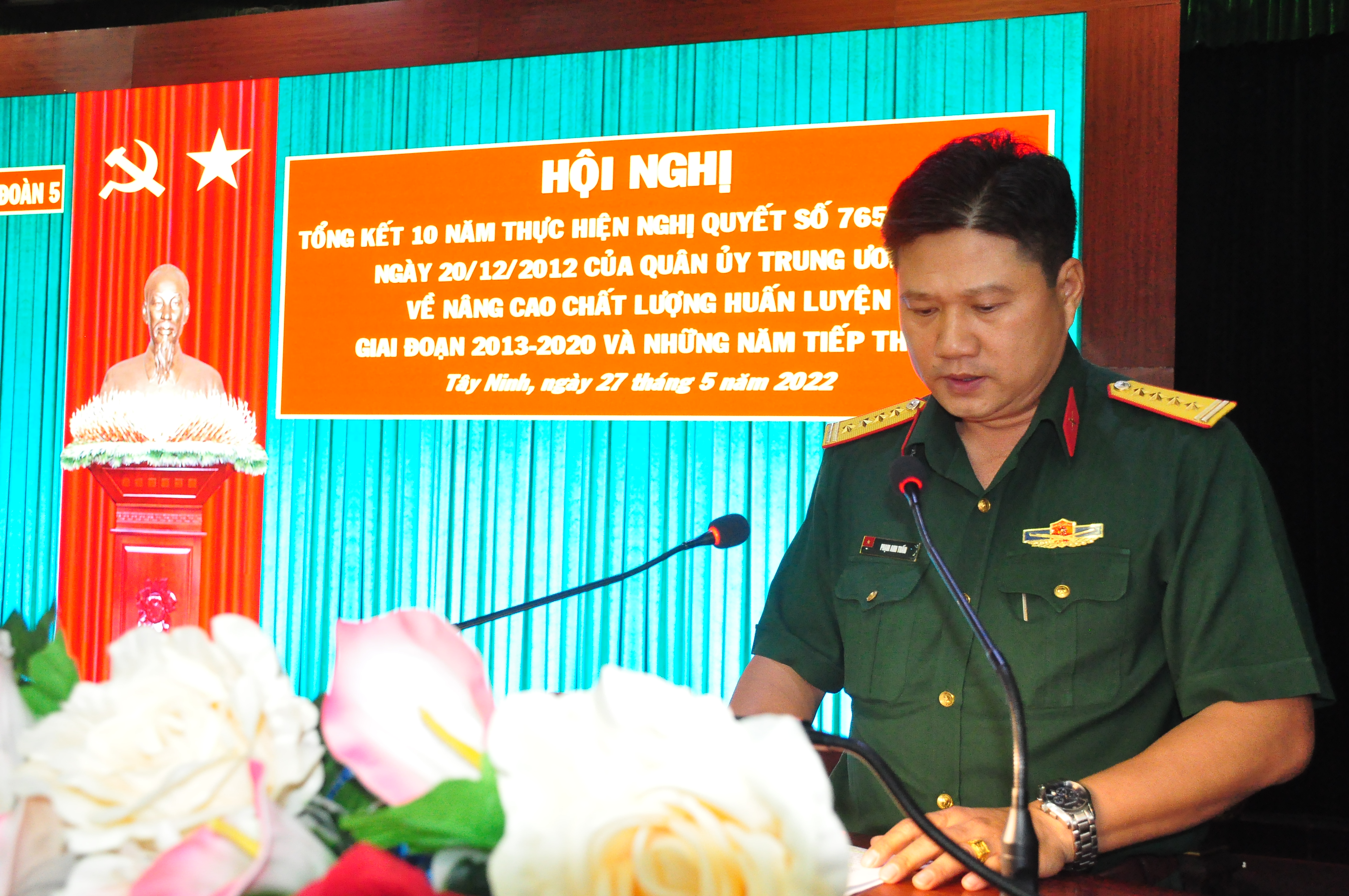 Trung tướng Trần Hoài Trung, Chính ủy Quân khu đánh giá cao thành tích của cán bộ, chiến sĩ Sư đoàn 5 trong 10 năm thực hiện Nghị quyết 765 cũng như công tác chuẩn bị để tổ chức hội nghị tổng kết làm điểm cho các đơn vị học tập, rút kinh nghiệm. Sư đoàn đã có nhiều mô hình, cách làm hay, sáng tạo nâng cao chất lượng công tác huấn luyện. Cán bộ, chiến sĩ Sư đoàn có bản lĩnh chính trị, có trình độ chuyên môn, ý chí quyết tâm cao, sẵn sàng nhận và hoàn thành tốt nhiệm vụ được giao.