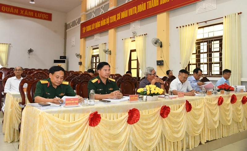 Đại tá Nguyễn Doãn Nam, Chính ủy Sư đoàn 7 và các đại biểu dự hội thảo.
