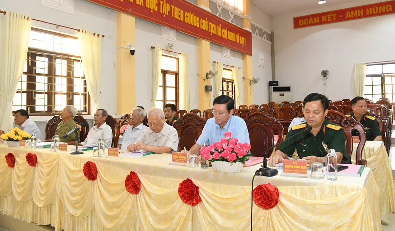 Đại tá Nguyễn Như Trúc, Phó Chủ nhiệm Chính trị Quân khu 7 (ngoài cùng bên trái) và các đại biểu dự hội thảo.