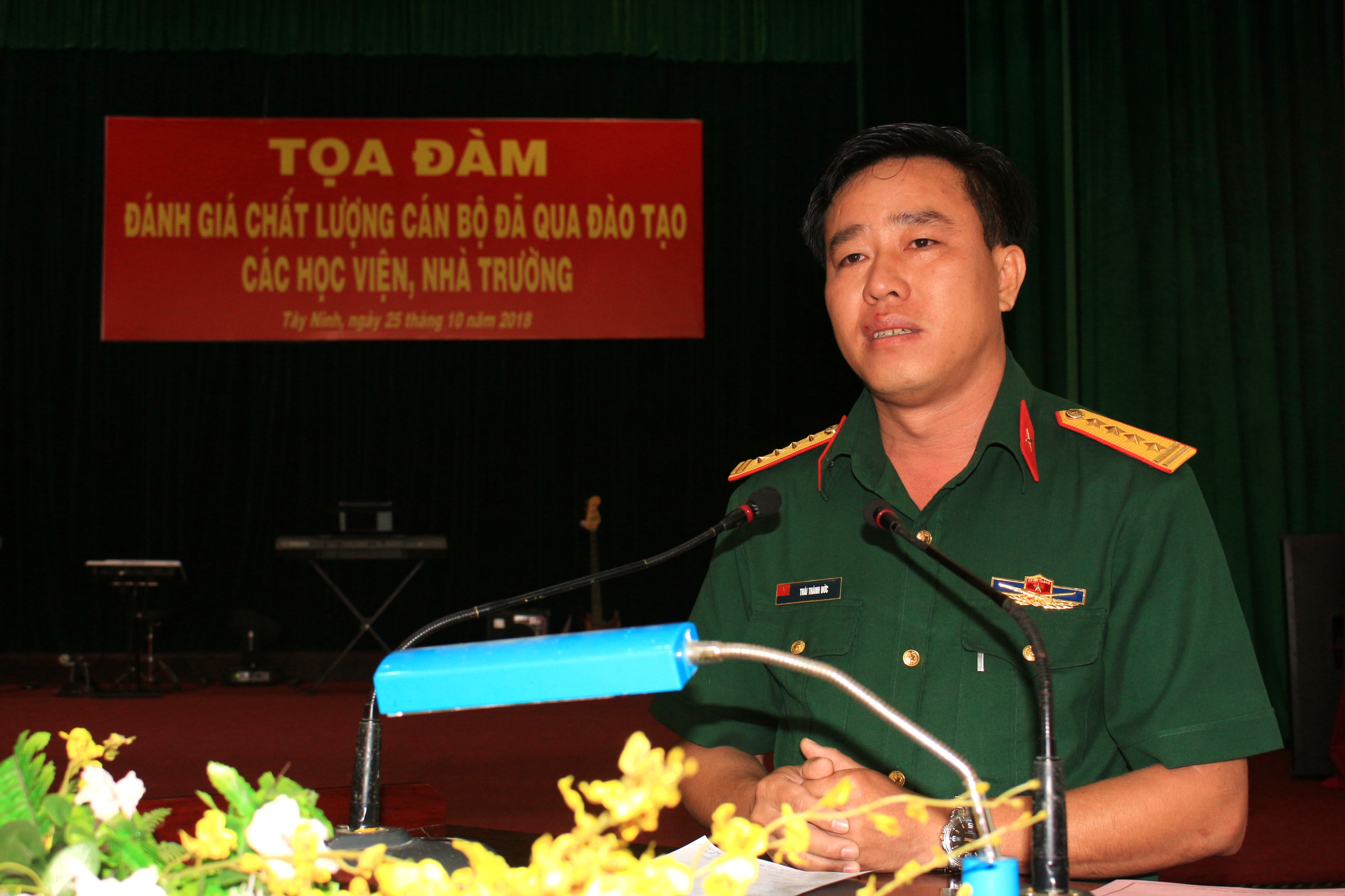 Đại tá Thái Thành Đức – Bí thư Đảng ủy – Chính ủy Sư đoàn phát biểu tại buổi tọa đàm.