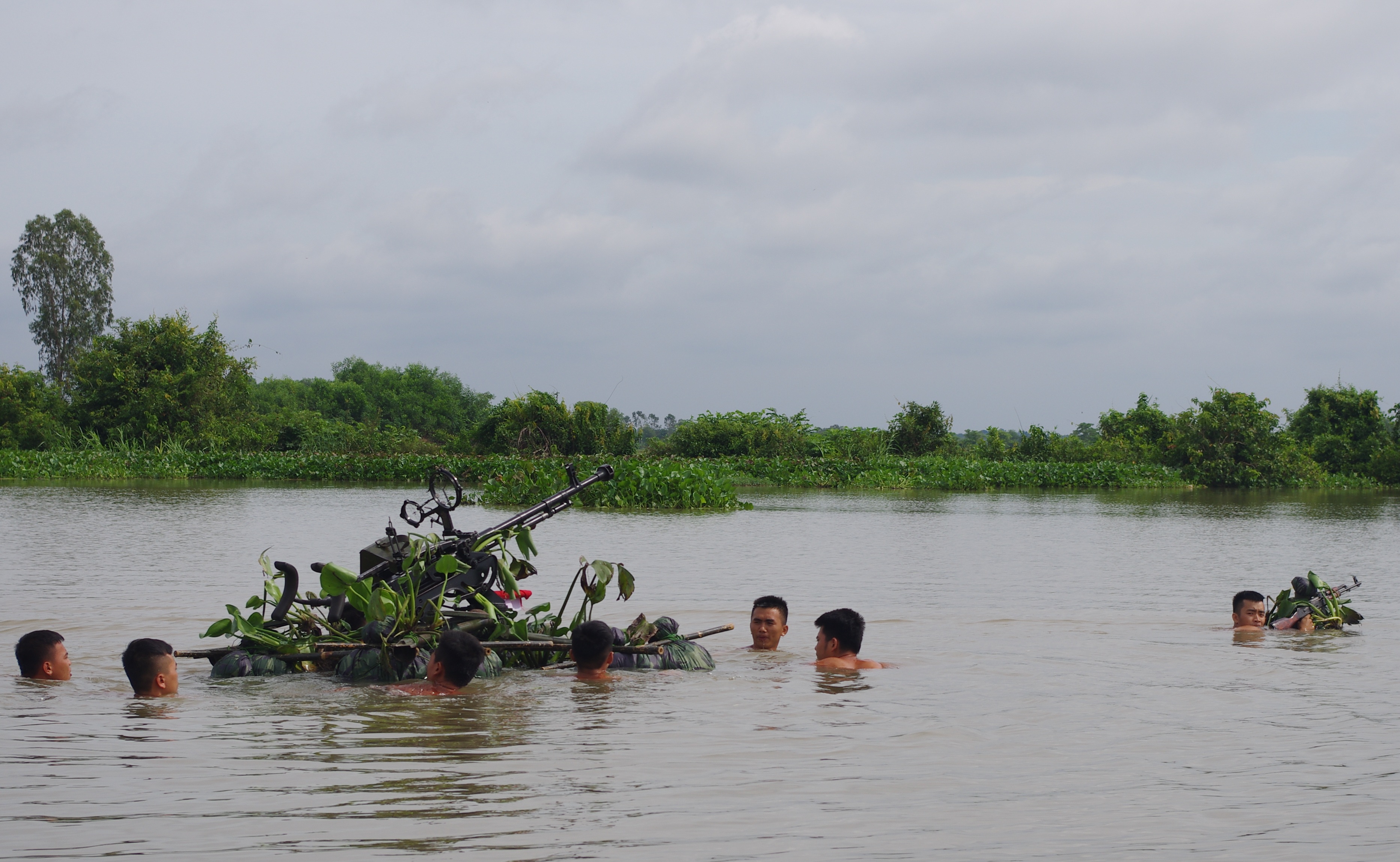 Hai ngày đi cùng đội hình diễn tập vòng tổng hợp của Tiểu đoàn bộ binh 2 thuộc Trung đoàn 4, Sư đoàn 5, tôi thực sự quên đi mệt mỏi bởi được hòa cùng niềm vui, tinh thần lạc quan, hồn nhiên của các đoàn viên, thanh niên nơi đây. Hành quân mang vác nặng gần 30 km trong đêm mưa rất vất vả, sáng sớm vừa dừng chân tại địa điểm thực hành vượt sông, song ai cũng nêu cao ý thức địch tình sát thực tế chiến đấu, tuyệt đối làm theo mệnh lệnh của chỉ huy, nhanh chóng triển khai đội hình, gói buộc ba lô, vũ khí, trang bị chuẩn bị vượt sông. Tại hai điểm bến vượt nổi bật băng rôn với dòng chữ “Tuổi trẻ Liên chi đoàn 2 thi đua huấn luyện giỏi, kỷ luật nghiêm chào mừng Đại hội ĐTNCS Hồ Chí Minh Quân khu 7 lần thứ IX”. Tình huống diễn tập phát ra, tiếng máy bay, đạn pháo gầm rít từ các cụm loa phóng thanh làm vang động cả khúc sông khiến không khí diễn tập thêm sôi động. Theo khẩu lệnh, từng bộ phận nối tiếp vượt sông bằng những động tác thật thành thục, nhanh chóng và an toàn. Gần trưa, cắt tình huống diễn tập, cả đơn vị lại vỡ òa, râm ran tiếng cười đùa, nói chuyện của các chiến sĩ. Chiến sĩ trẻ nào đó cao hứng cất lời ca cổ “Từ buổi quen nhau em thường kể cho anh nghe chuyện màu xanh trên dòng sông Vàm Cỏ…”. Chiến sĩ Phạm Quốc Thái, đoàn viên chi đoàn Đại đội 7, Tiểu đoàn 2, Trung đoàn 4 bày tỏ quyết tâm: Để lập thành tích chào mừng Đại hội ĐTNCS Hồ Chí Minh Quân khu lần thứ IX, Thái cùng các bạn trong đơn vị đã đăng ký quyết tâm và sẽ cố gắng học tập, rèn luyện, xung kích, phấn đấu hoàn thành tốt mọi nhiệm vụ được giao.