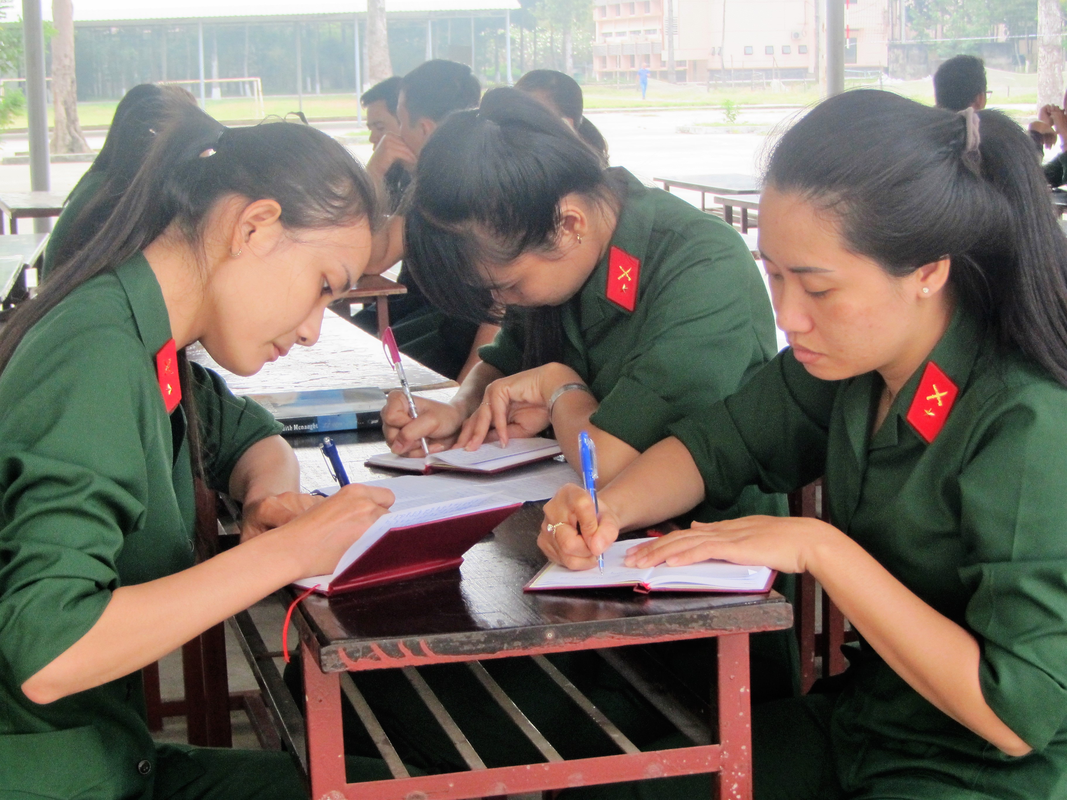 (QK7 Online) Chúng tôi có mặt tại Trung tâm giáo dục Quốc phòng Trường quân sự Quân khu 7 khi trên sân tập của Trung tâm các “bóng hồng” vừa khoác màu xanh áo lính đang sôi nổi các hoạt động ngoại khóa như: bóng chuyền, cầu lông, đá cầu…