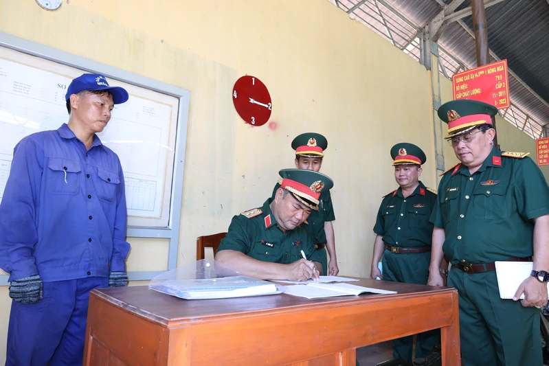Trung tướng Lê Xuân Thế, Ủy viên Ban Chấp hành Trung ương Đảng, Tư lệnh Quân khu ký nhận xét sổ kiểm tra nhà kho nơi Thiếu tá QNCN Trịnh Văn Chương đảm nhận nhiệm vụ.