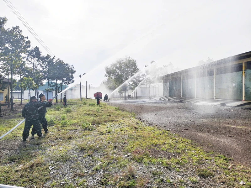 “Đơn vị còn trang bị hệ thống bơm nước cố định và xe cứu hỏa luôn sẵn sàng khi có tình huống cháy nổ xảy ra, hệ thống này nhanh chóng vận hành dẫn nước đến khu vực cháy một cách nhanh nhất. Đặc biệt hiện nay, đơn vị đã triển khai sử dụng bình chữa cháy bằng dung dịch xà phòng, đây là sáng kiến mang lại hiệu quả thiết thực, giúp tăng khả năng dập lửa nhanh, hạn chế cháy lan. Việc áp dụng sáng kiến này góp phần giảm thiểu thiệt hại về tài sản, nâng cao hiệu quả công tác phòng cháy chữa cháy tại chỗ trong đơn vị”, Trung tá Nguyễn Tấn Đại nói thêm.