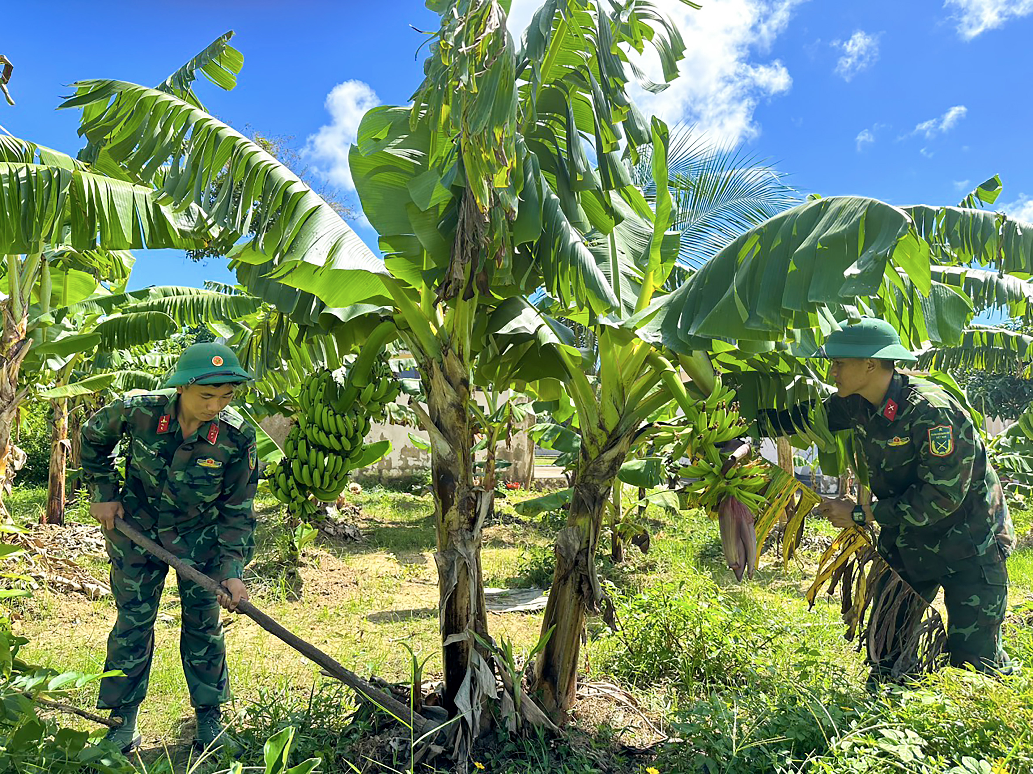 Cụ thể, để cải tạo tình trạng đất nơi đơn vị đóng quân là cát pha, ít chất dinh dưỡng, ảnh hưởng đến năng suất rau trồng, cán bộ, chiến sĩ đã lên núi lấy đất mùn, lá cây, tận dụng nguồn phân hữu cơ. Nhờ đó, giúp rau, củ, quả được trồng tại đơn vị luôn xanh tốt quanh năm.