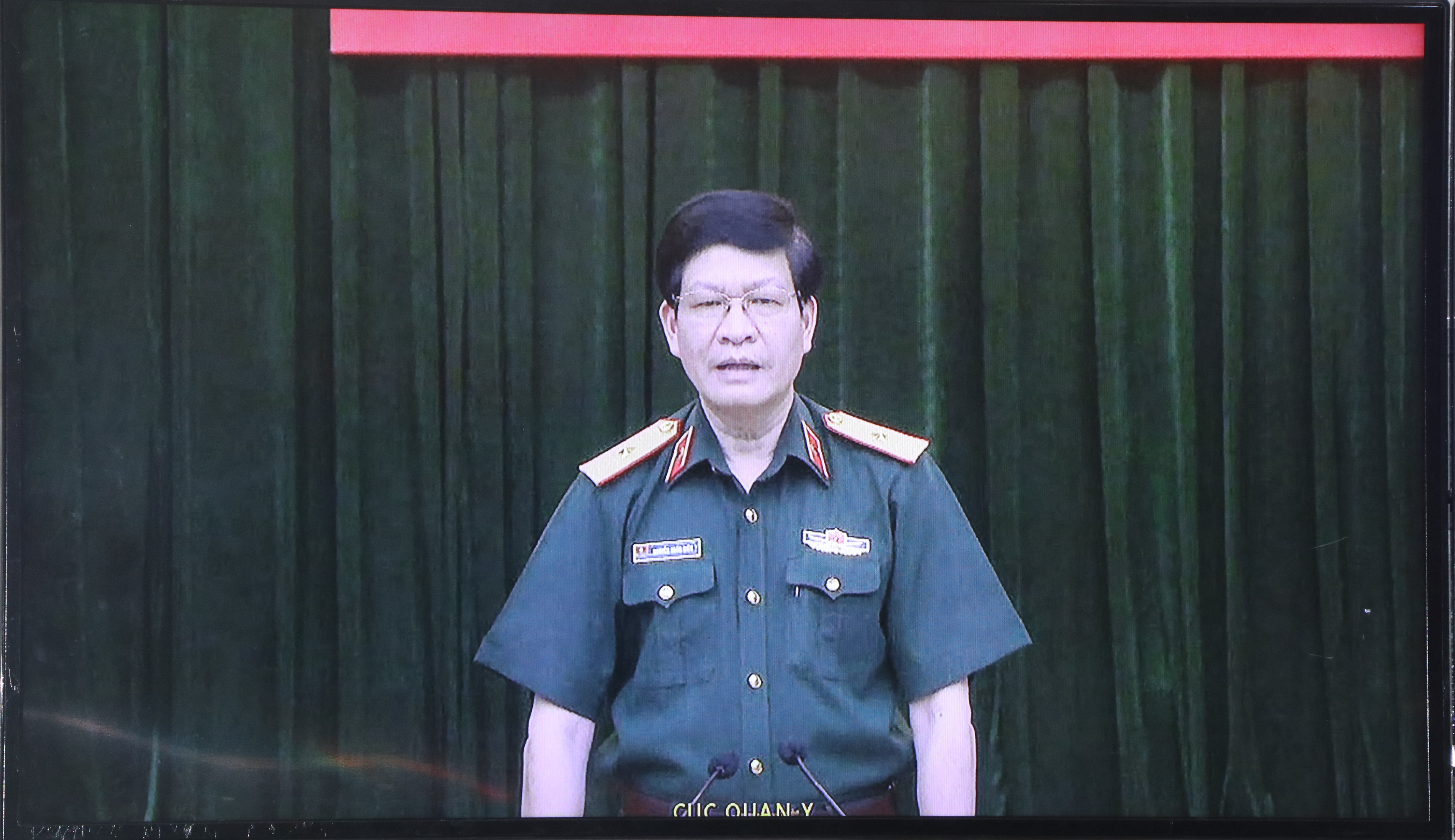 Thiếu tướng, PGS, TS Nguyễn Xuân Kiên, Cục trưởng Cục Quân y chủ trì hội nghị. Ảnh chụp qua màn hình
