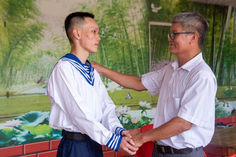 Ông Nguyễn Văn Khiêm dặn dò con trai trước khi lên đường nhập ngũ.
