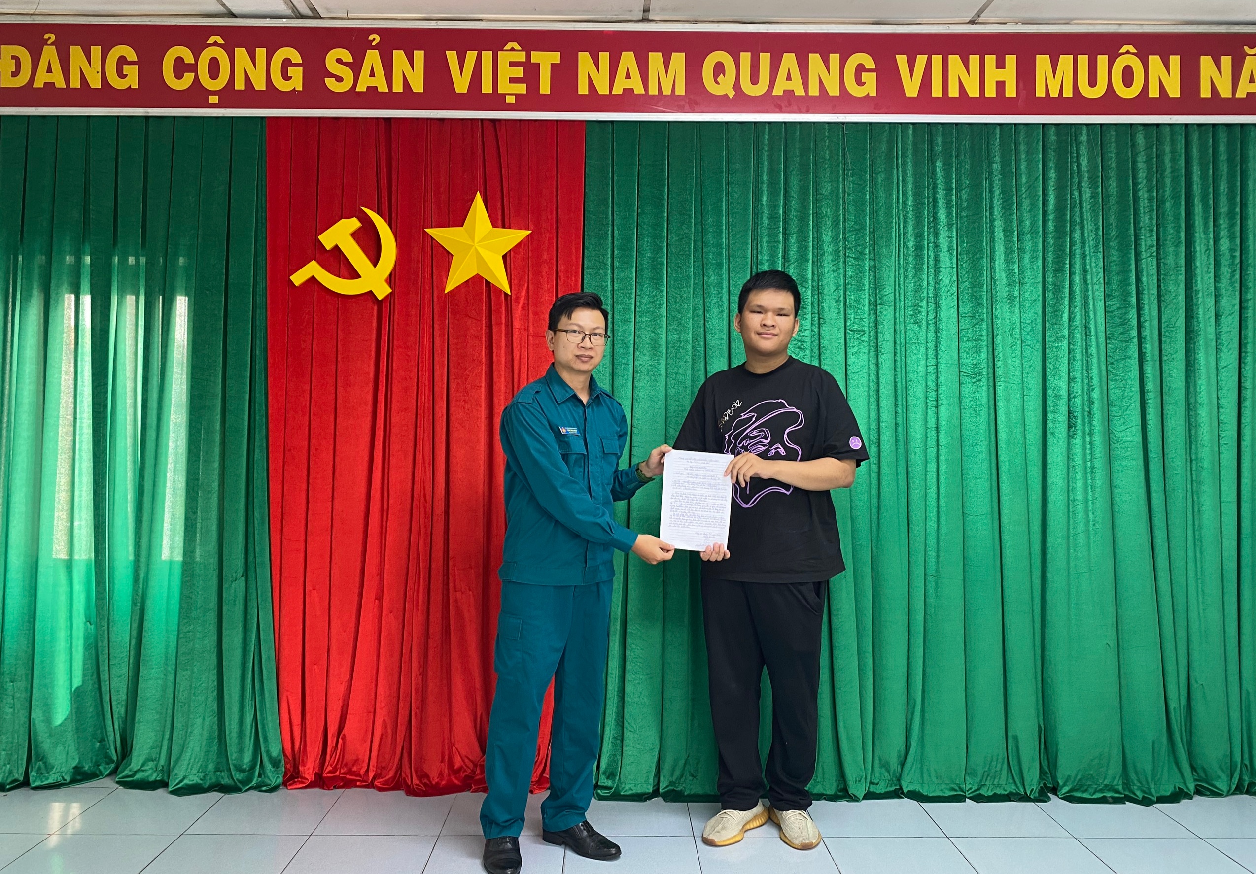 Ban CHQS Phường 14, Quận 3 tiếp nhận đơn tình nguyện nhập ngũ của Thanh niên Nguyễn Hoàng Quốc Anh.