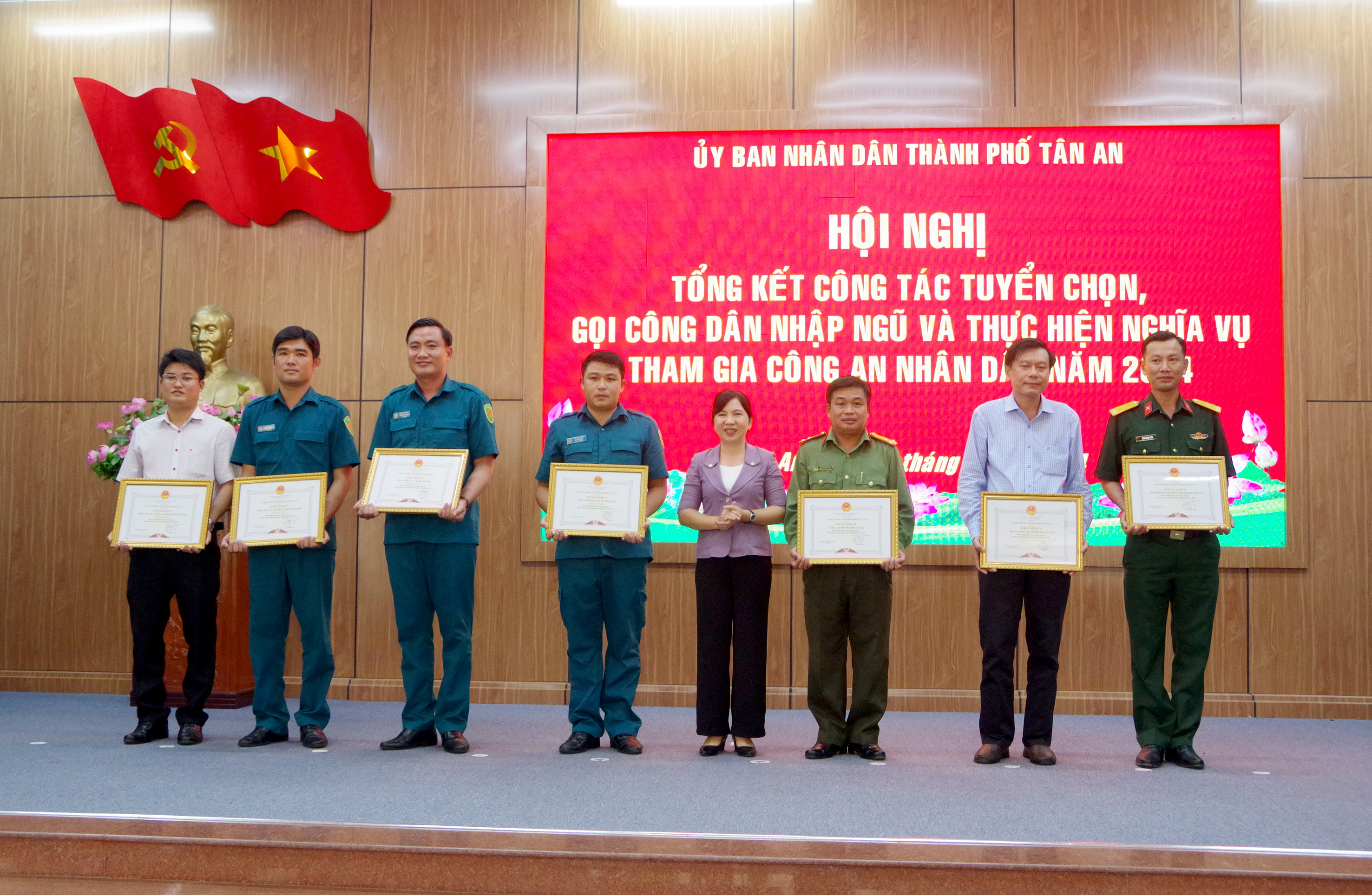 Nhân dịp này, UBND thành phố Tân An khen thưởng cho 7 tập thể, 36 cá nhân đạt thành tích xuất sắc trong công tác tuyển chọn và gọi công dân nhập ngũ năm 2024.