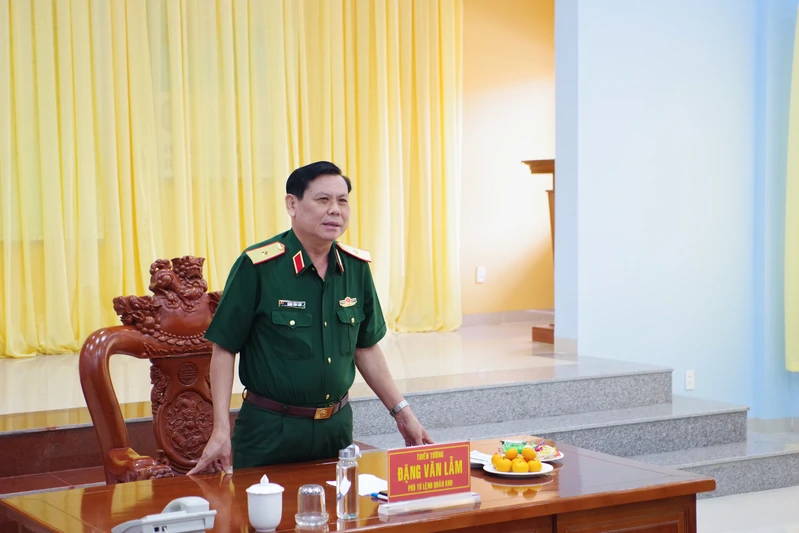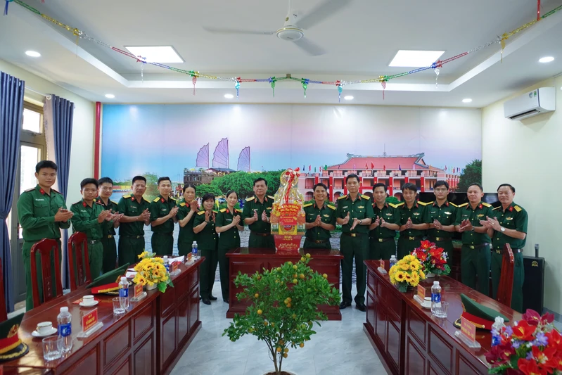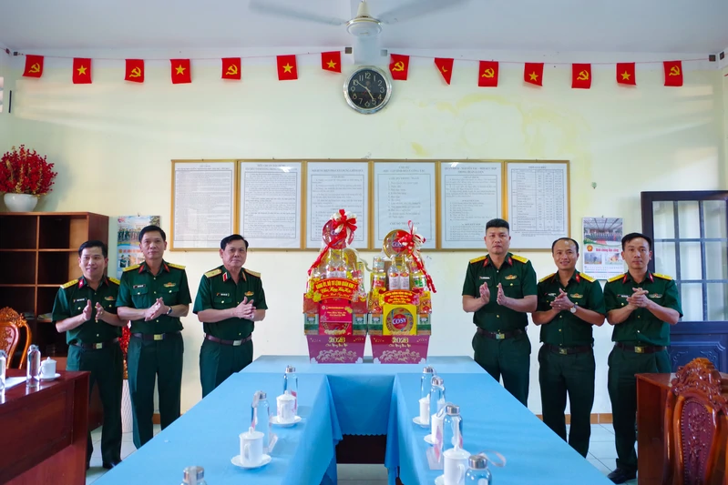 Thiếu tướng Đặng Văn Lẫm, Ủy viên Ban Thường vụ Đảng ủy, Phó Tư lệnh Quân khu 7 cùng đoàn công tác tặng quà chúc mừng năm mới Tiểu đoàn 60 (Bộ Tham mưu).