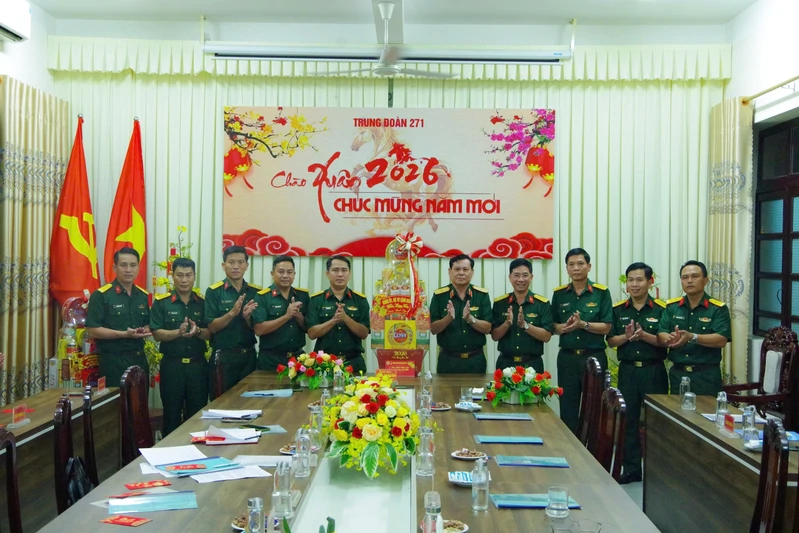 Thiếu tướng Đặng Văn Lẫm, Ủy viên Ban Thường vụ Đảng ủy, Phó Tư lệnh Quân khu 7 cùng đoàn công tác tặng quà chúc mừng năm mới Trung đoàn 271 (Sư đoàn 5).