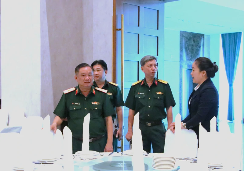 Thiếu tướng Trần Chí Tâm, Phó Chính ủy Quân khu kiểm tra không gian phòng tiệc.
