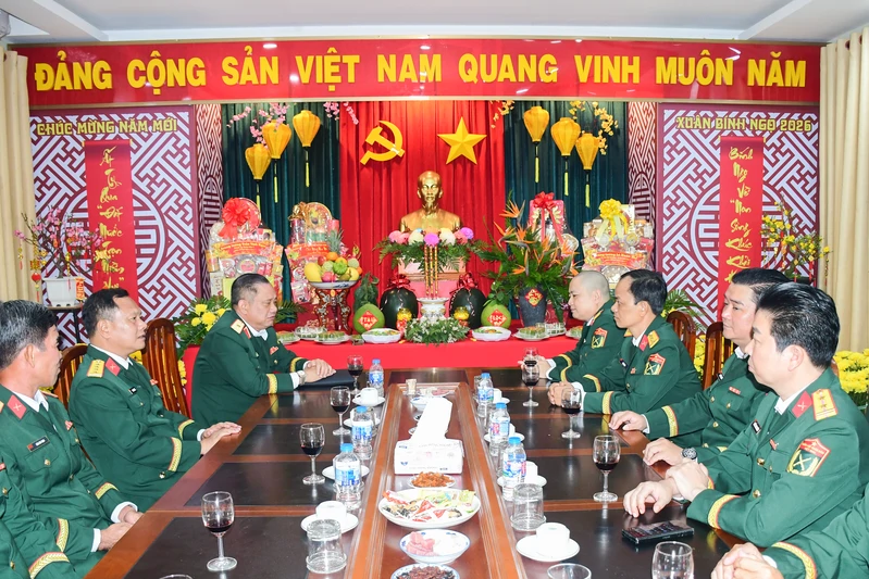Chỉ huy Lữ đoàn 77 đã báo cáo với đồng chí Phó Chính ủy Quân khu về kế hoạch trực sẵn sàng chiến đấu của đơn vị và công tác chăm lo tết Nguyên đán Bính Ngọ năm 2026 cho cán bộ, chiến sĩ cũng như quan tâm và chia sẻ với những gia đình quân nhân có hoàn cảnh khó khăn để gia đình đón một mùa xuân vui tươi, đầm ấm.