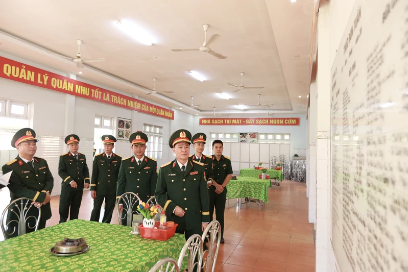 Đồng chí Phó Tư lệnh Quân khu kiểm tra thực đơn ngày Tết Lữ đoàn 75.