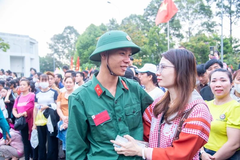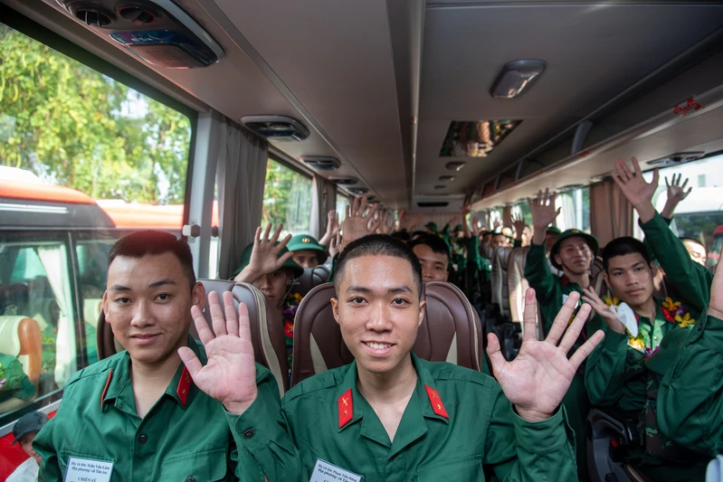 Các thanh niên tự hào, phấn khởi lên đường nhập ngũ.
