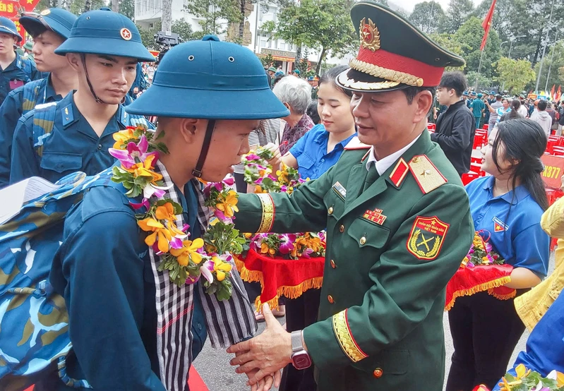 Thiếu tướng Lê Ngọc Hải, Phó Tham mưu trưởng Quân khu động viên các thanh niên lên đường nhập ngũ.