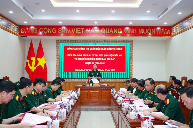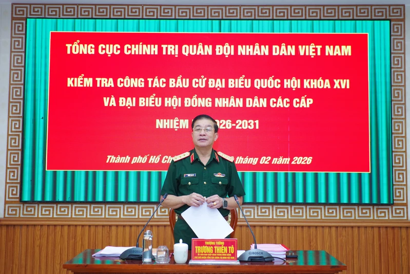 (QK7 Online) - Sáng ngày 26/2, Thượng tướng Trương Thiên Tô, Ủy viên Ban Chấp hành Trung ương Đảng, Phó Chủ nhiệm Tổng cục Chính trị Quân đội nhân dân Việt Nam cùng đoàn công tác đã kiểm tra công tác bầu cử đại biểu Quốc hội (ĐBQH) khóa XVI và bầu cử đại biểu Hội đồng Nhân dân (ĐB HĐND) các cấp nhiệm kỳ 2026-2031 tại Bộ Tư lệnh TP. Hồ Chí Minh.