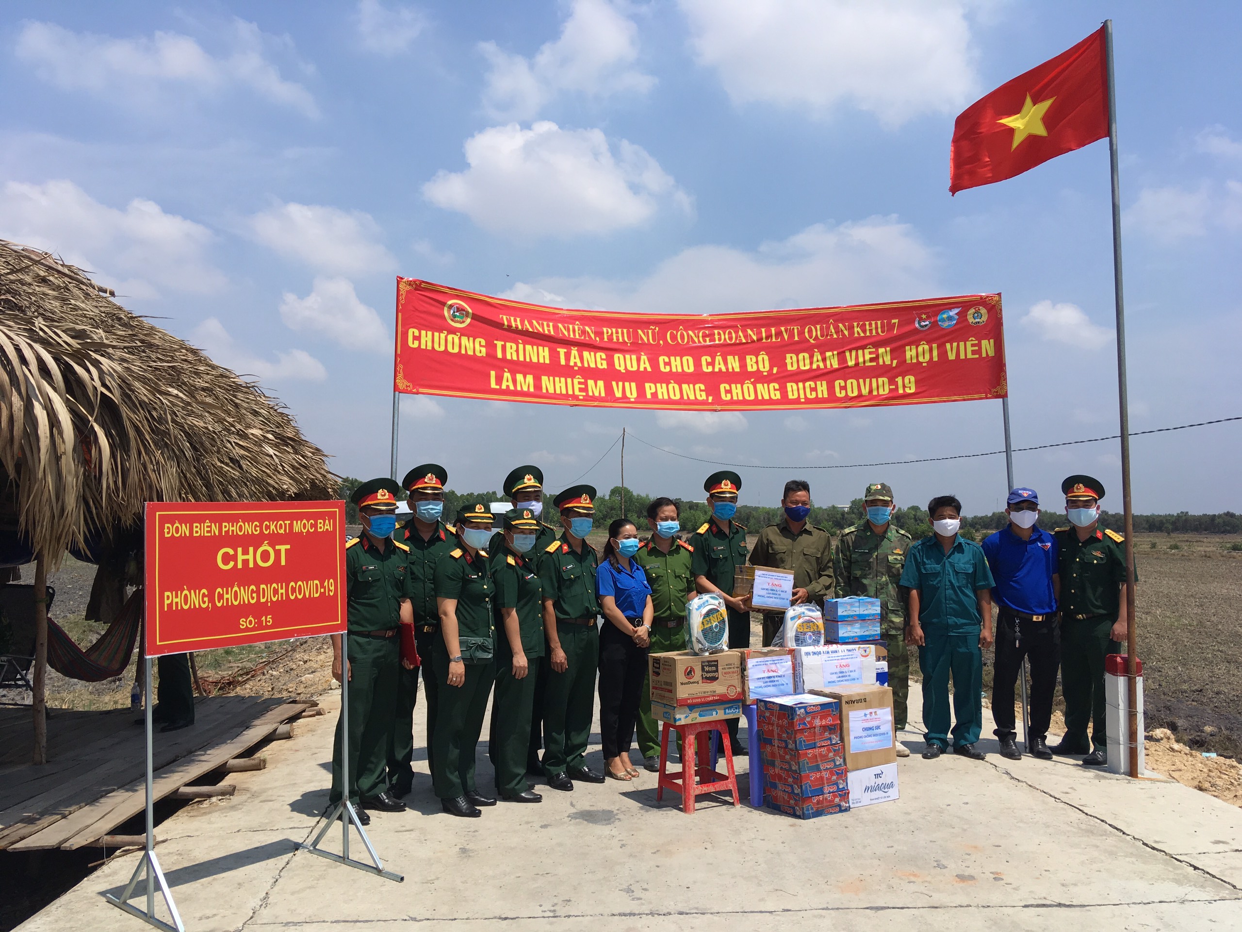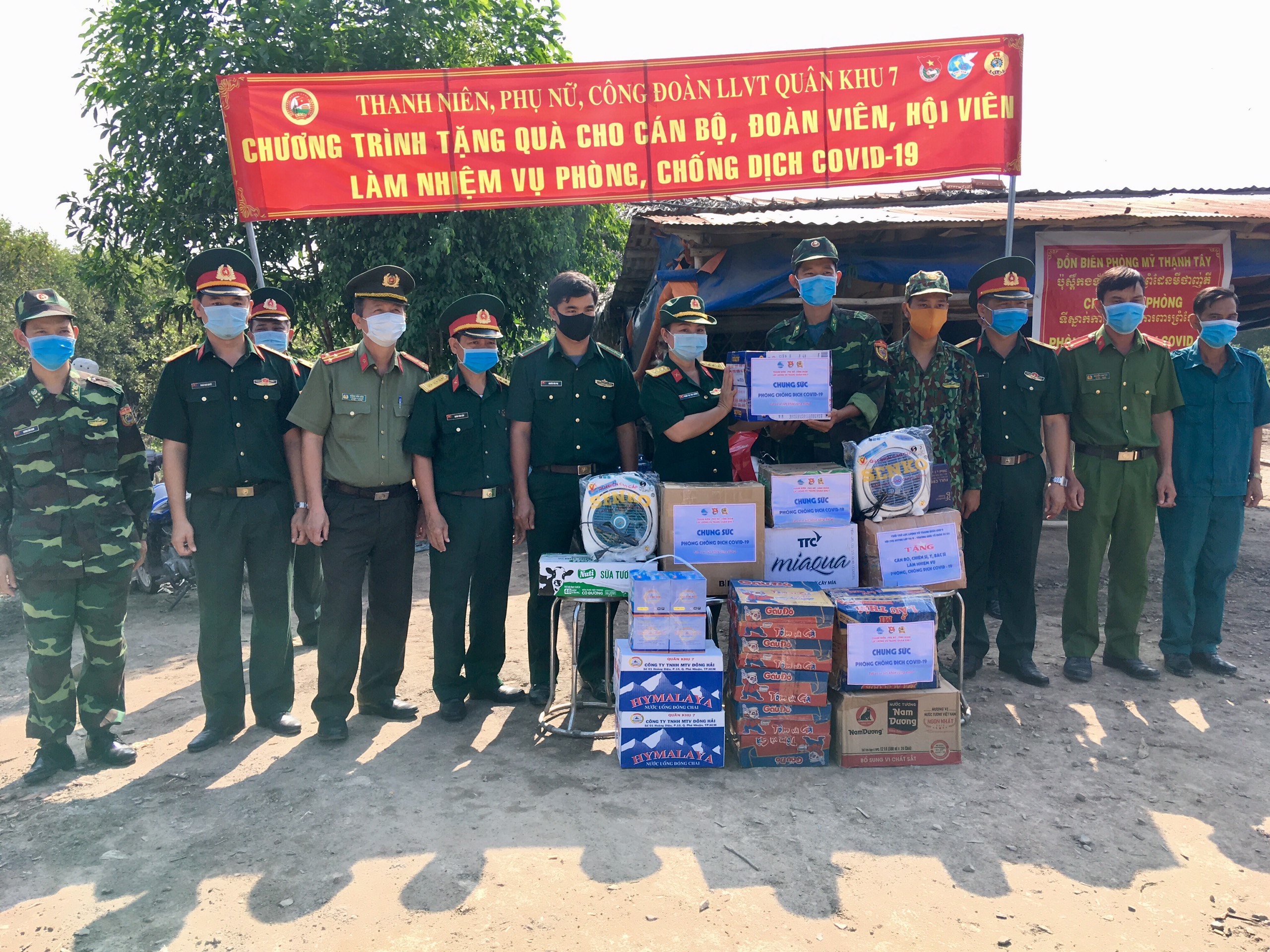 10 chốt kiểm soát dịch dọc đường tuần tra biên giới mà đoàn đến thăm và tặng quà đều thuộc các chốt dã chiến, mới được dựng lên tại những điểm có đường mòn, lối mở nằm dọc đường tuần tra biên giới tỉnh Long An và Tây Ninh, nhằm ngăn chặn các đối tượng vượt biên trái phép từ khi dịch Covid-19 bùng phát. Lực lượng ở đây gồm biên phòng, công an, dân quân tự vệ, quản lý thị trường tuần tra, kiểm soát chặt chẽ tất cả hoạt động xuất nhập cảnh, đi lại qua biên giới 24/24. Đoàn công tác đã gặp gỡ, động viên, tặng nhiều phần quà gồm: 1.000 khẩu trang, 150 lít nước rửa tay sát khuẩn, quạt máy, nhu yếu phẩm phục vụ sinh hoạt hàng ngày trị giá 50 triệu đồng. Các phần quà do đoàn viên Thanh niên, Công đoàn và hội viên Phụ nữ trong toàn LLVT Quân khu đóng góp.